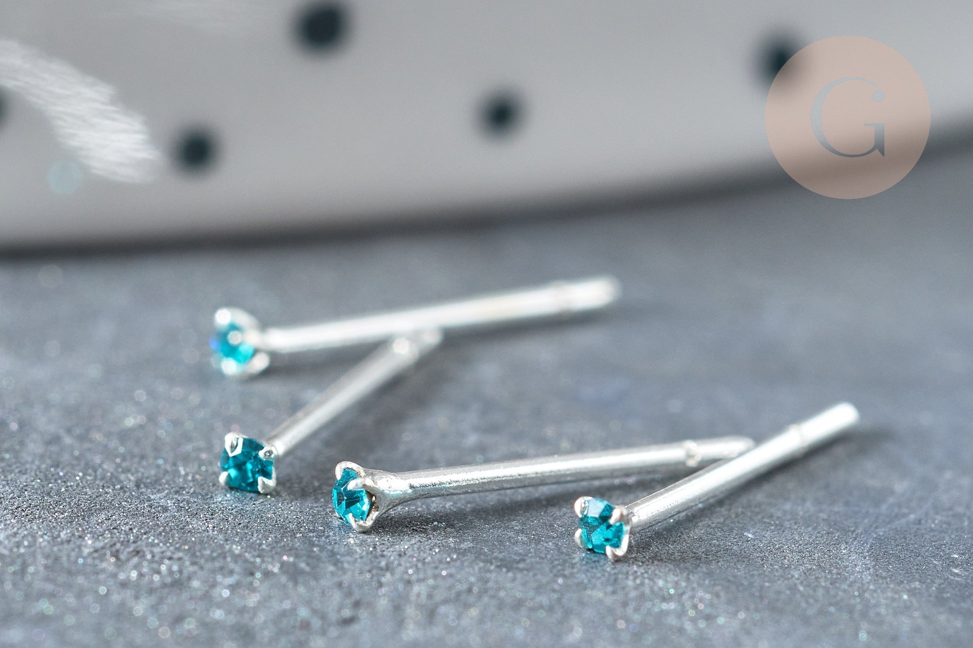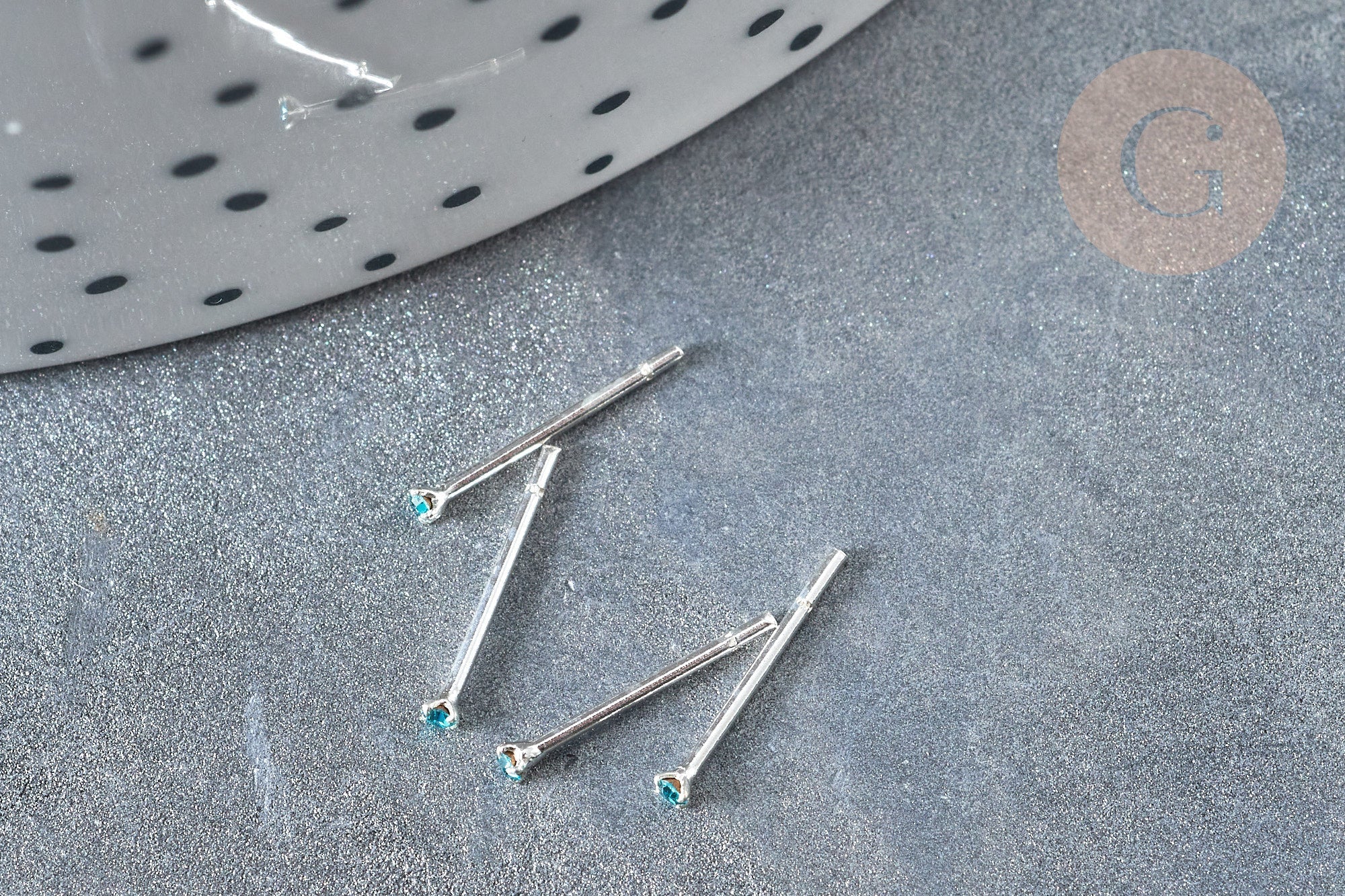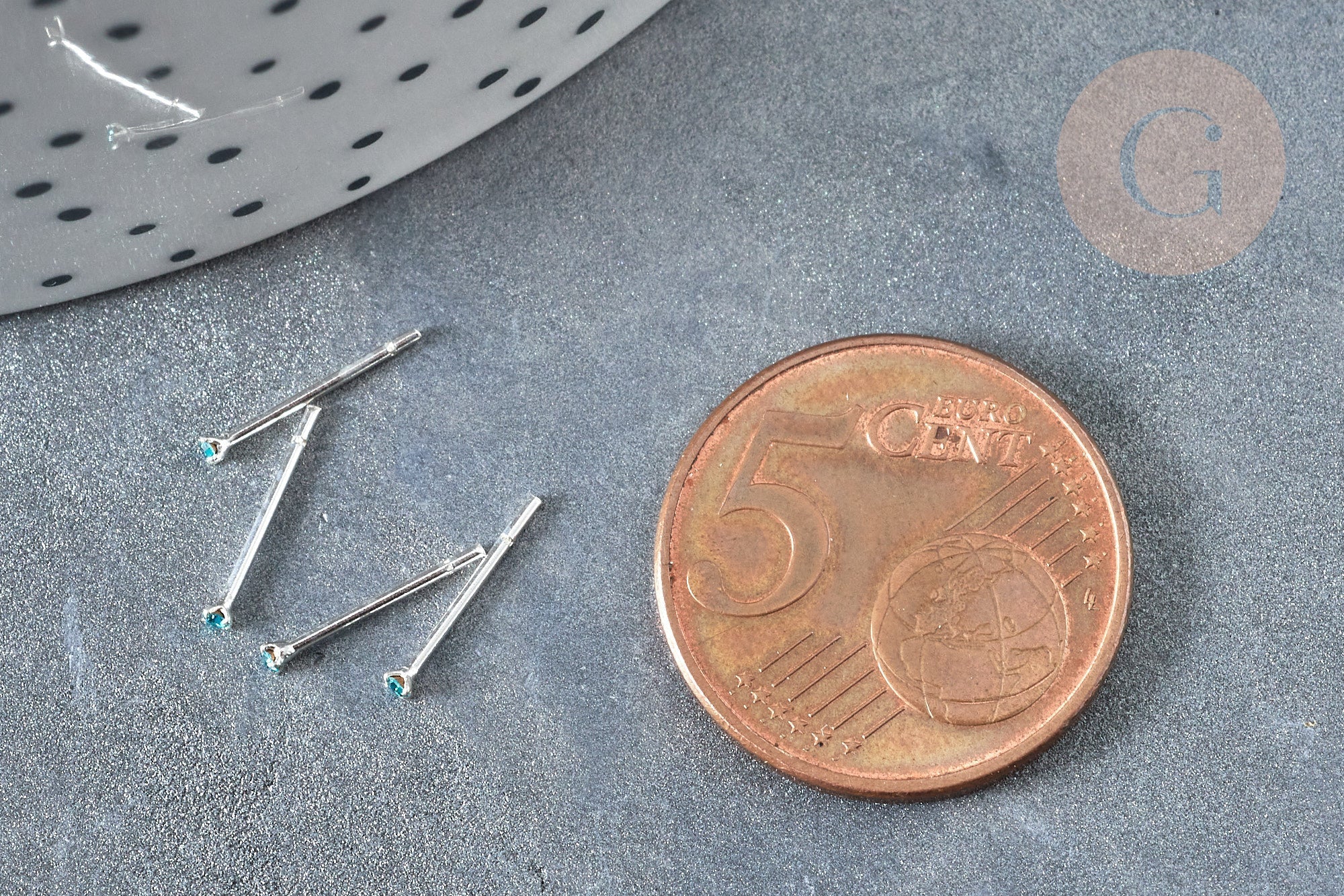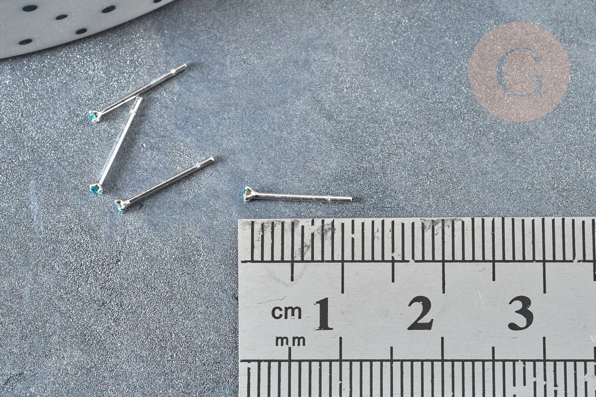 Piercing clou argent 925 massif strass couleur turquoise 1.5mm, x1 (G7599)