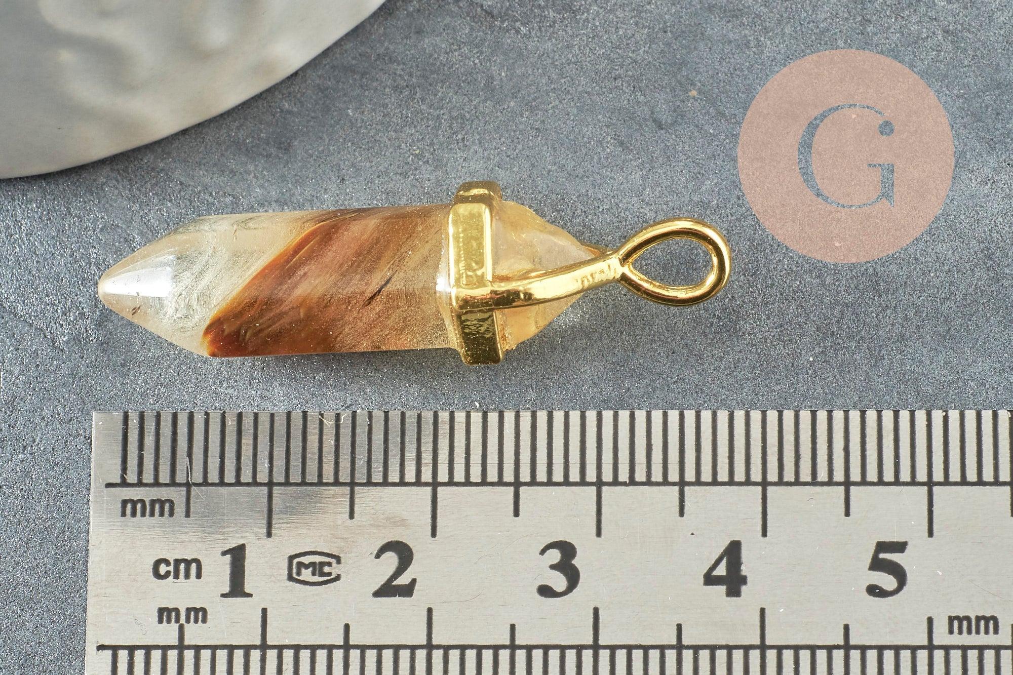 Colgante de cuarzo piel de tigre con punta de zamac dorado 37-40mm, creación de joyería con piedras naturales, x1 G4446