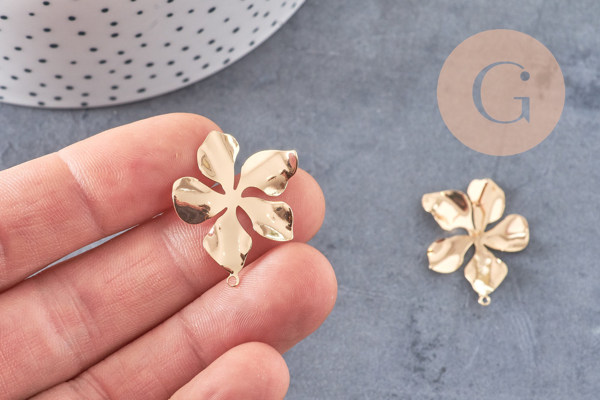 Enamórate de estos pendientes XL con forma de flor de latón bañado en oro de 18 quilates , con un elegante y moderno diseño trenzado. Estos accesorios de alta gama no contienen níquel y son ideales para un charm o colgante gracias a su orificio de 1,2 mm en la base de la flor.