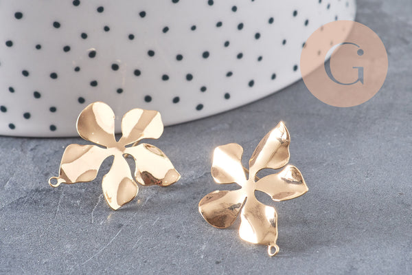 Boucles d'oreilles fleur XL laiton doré 18K 19mm, la paire, (G10757)