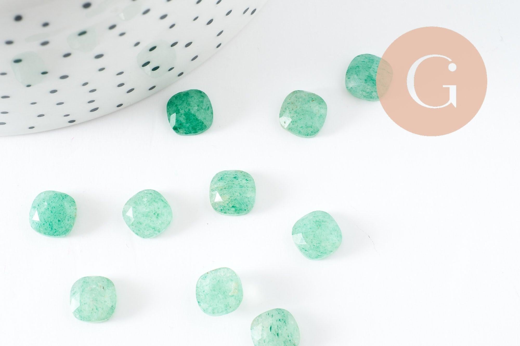 Adopte este cabujón cuadrado de cuarzo aventurina natural facetado para crear joyas delicadas