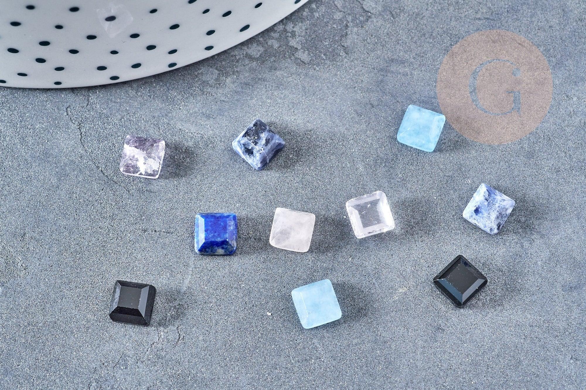 Cabujón cuadrado de piedra natural ónix, lapislázuli, cristal de roca, cuarzo rosa, jade, 6x6 mm, x1 (G8651)