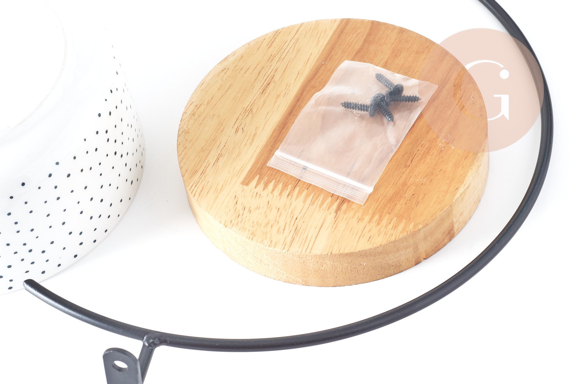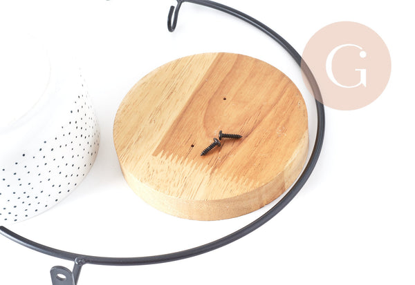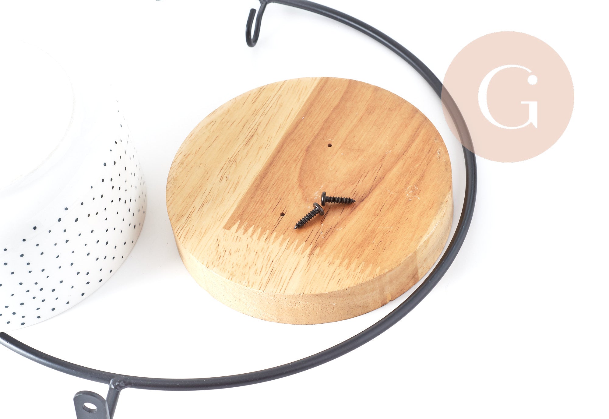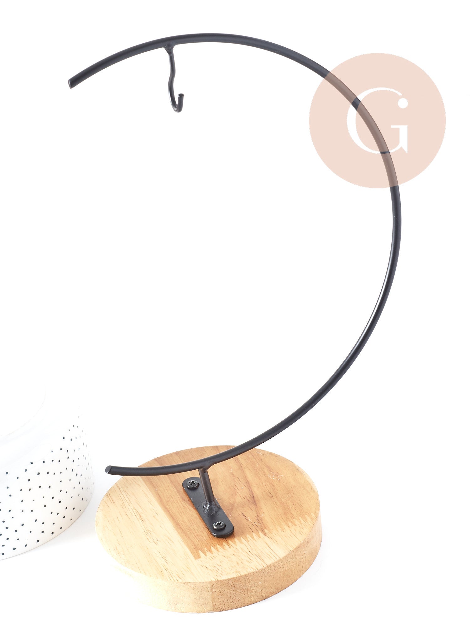 Expositor elipse en madera y hierro negro 11,5x28 cm, expositor de joyas, decoración arreglo floral, x1 G8985