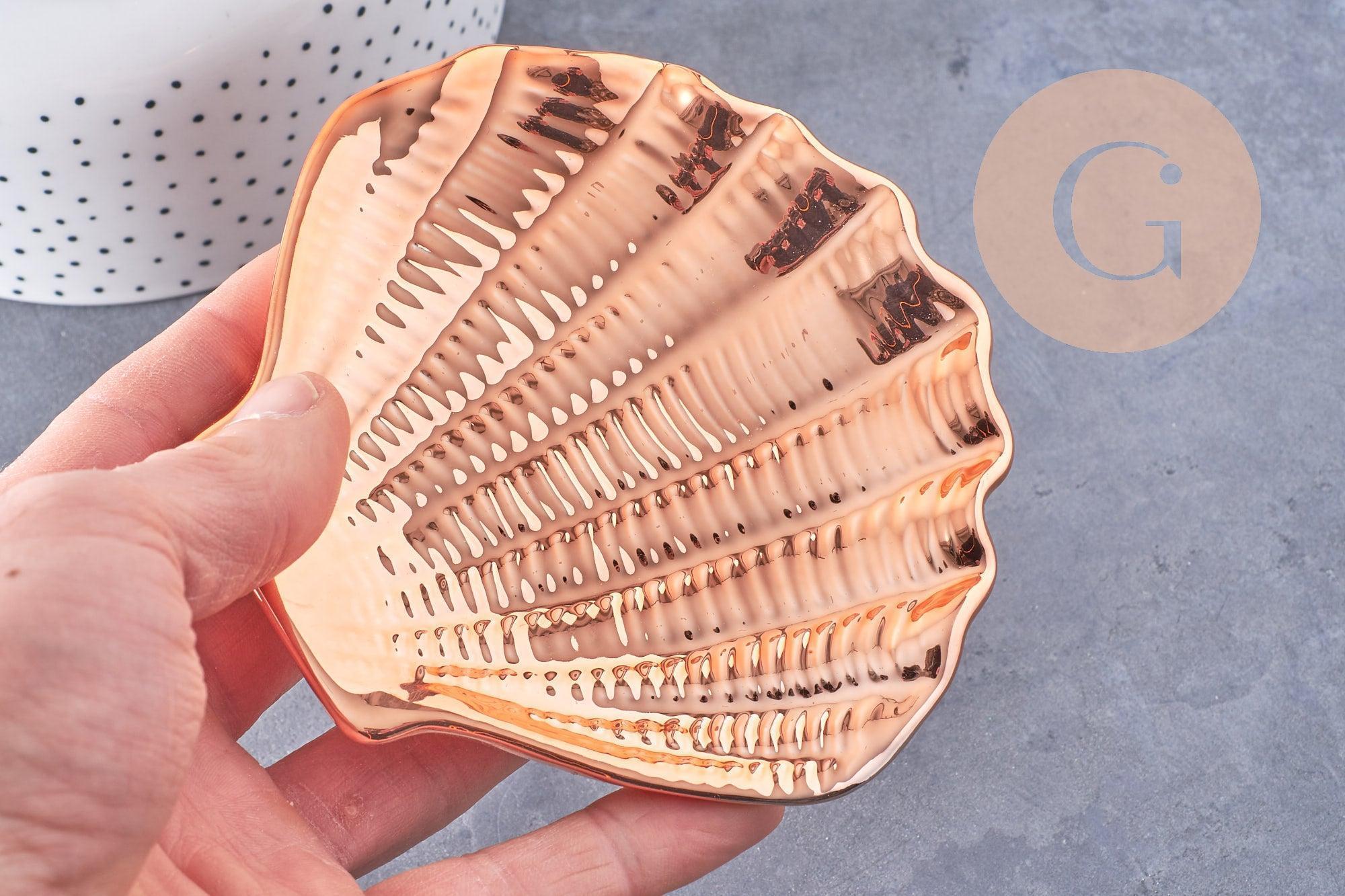 Plato de exhibición de joyas de porcelana blanca o dorada con forma de concha, 100-110 mm, x1 (G10329)