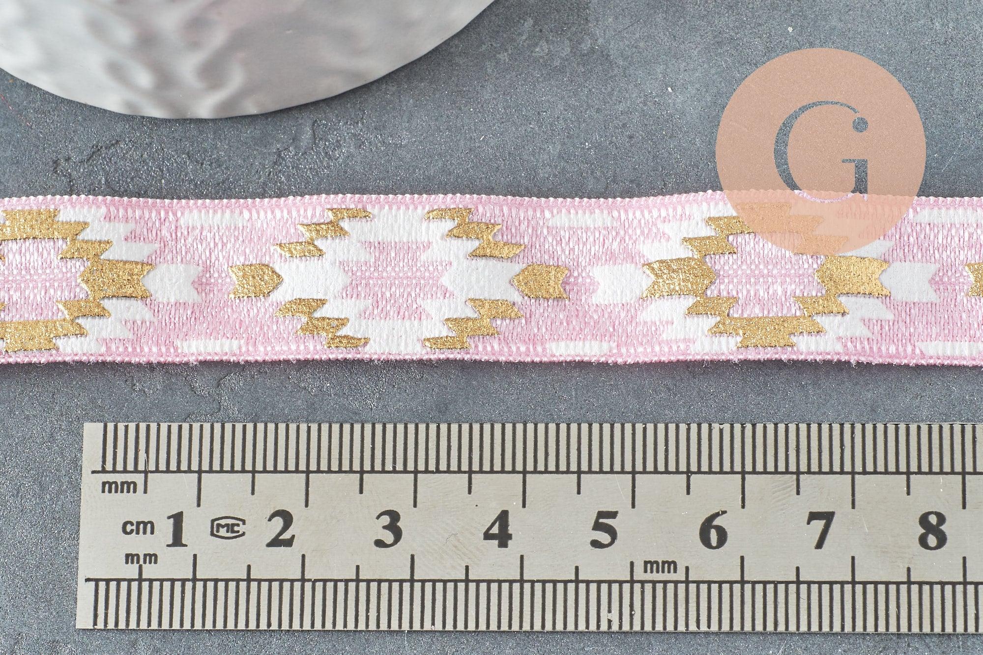 Una magnífica cinta elástica rosa claro estampada con un elegante motivo azteca y estampado en caliente dorado, un complemento elegante y refinado para sus despedidas de soltera, sus creaciones de scrapbooking, creación de joyas, sus invitaciones de boda y pequeños regalos de boda y otras creaciones de bricolaje.