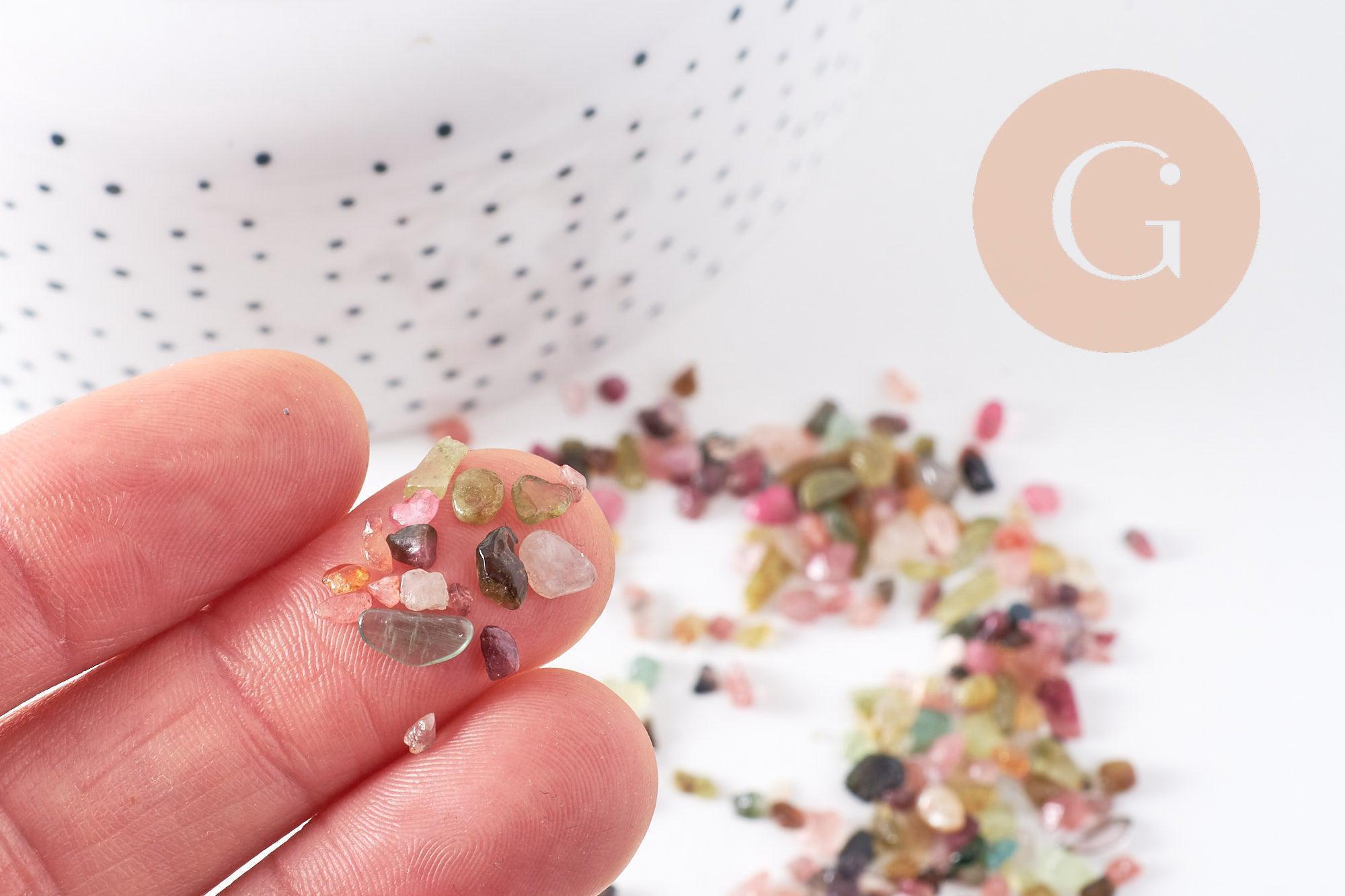 Sable chips pierre tourmaline naturelle multicolore 3-9mm non percé, x20gr (G1764)