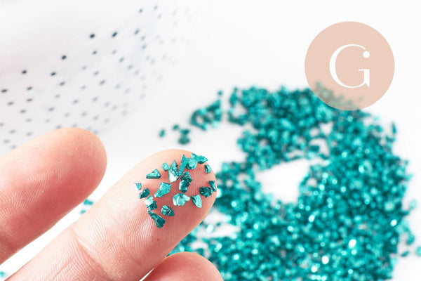 Arena de vidrio azul, suministros creativos, chips minerales, vidrio coloreado, vidrio azul, piedra de vidrio, creación de joyas , arena de acuario, bolsa de 10 gramos