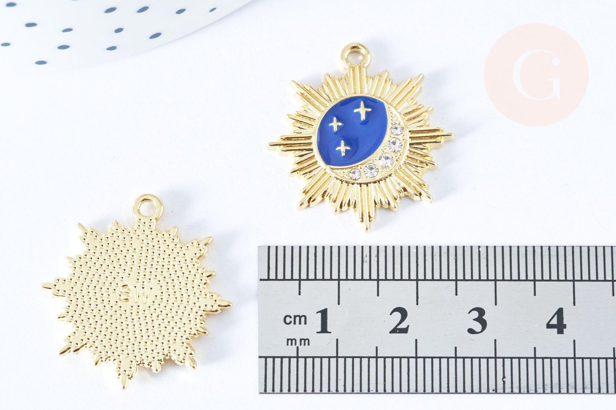 colgante sol luna estrellas azul zamac oro 18k cristal circonita 26mm, sin níquel, colgante de la suerte, x1 G6682