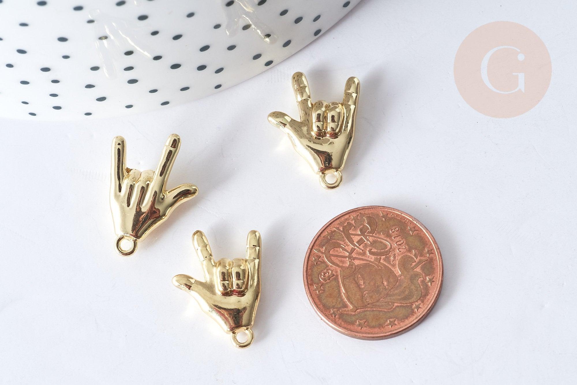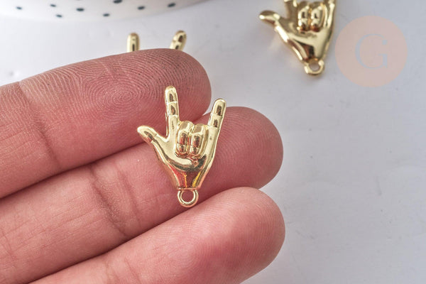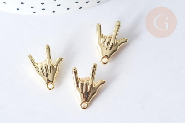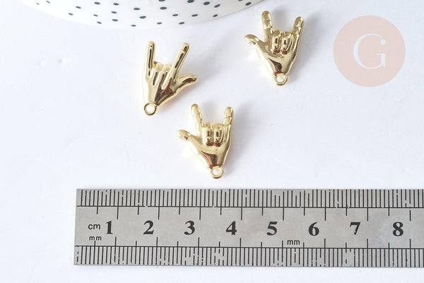 ¡Crea un montón de bisutería Rock con este charm de zamac bañado en oro , libre de cadmio y plomo, que representa el símbolo del Rock'n Roll!