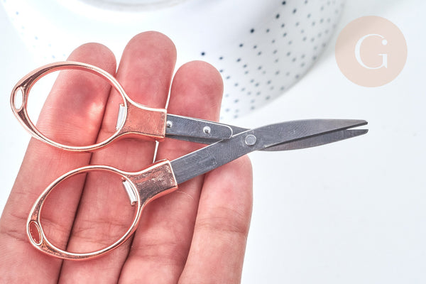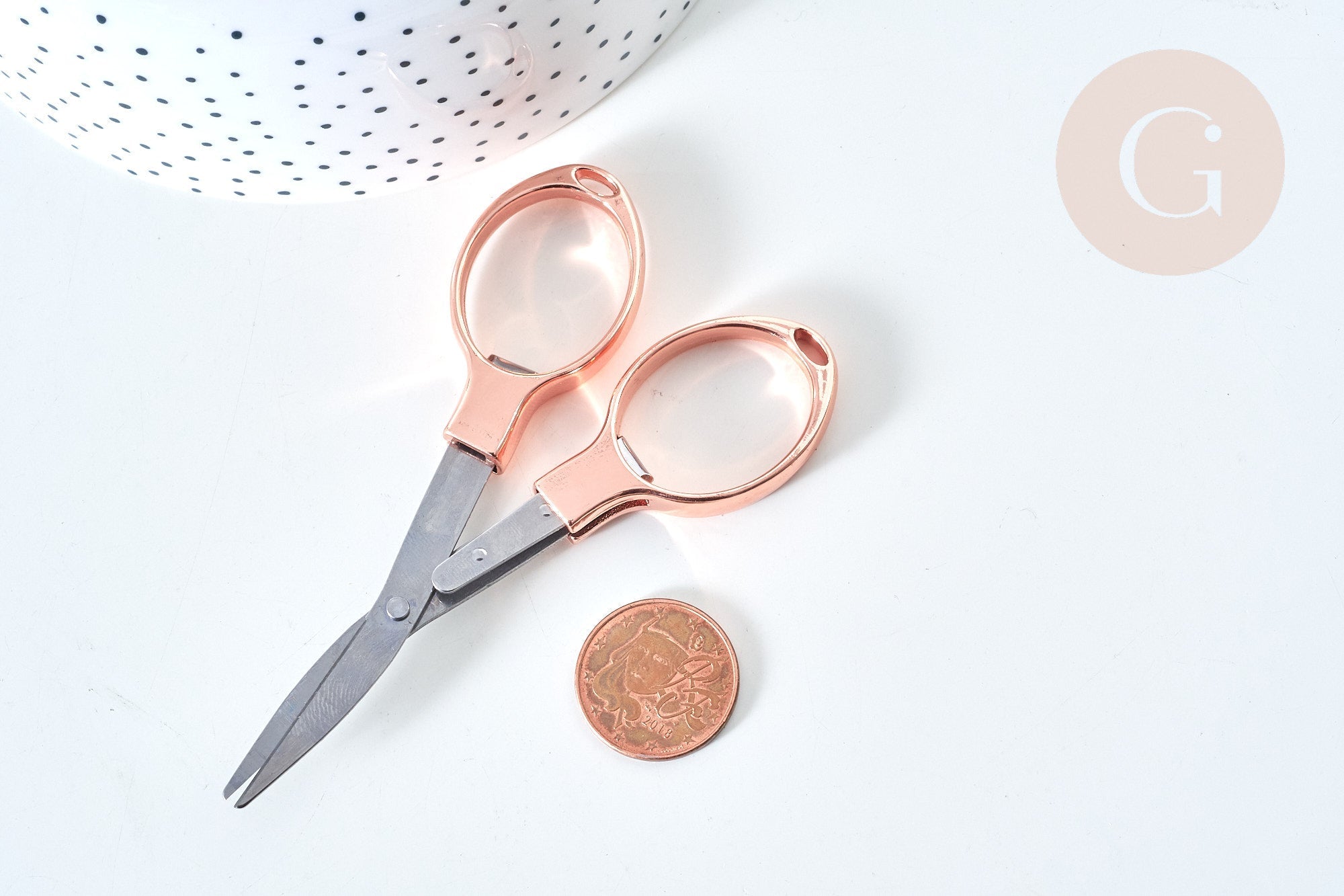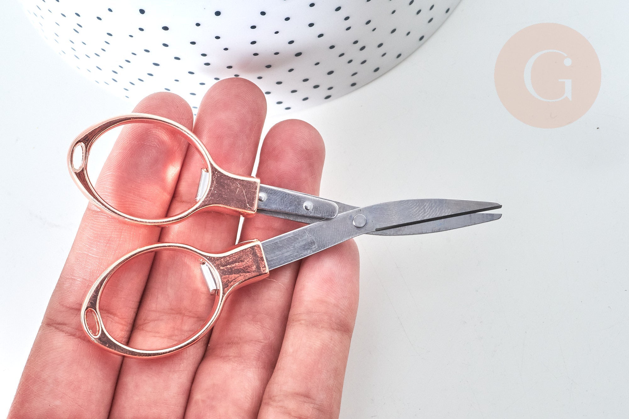 Tijeras de bolsillo plegables 304 acero inoxidable oro rosa 9,6 mm, suministro de joyería, tijeras de costura, suministro de moda x1, G7841