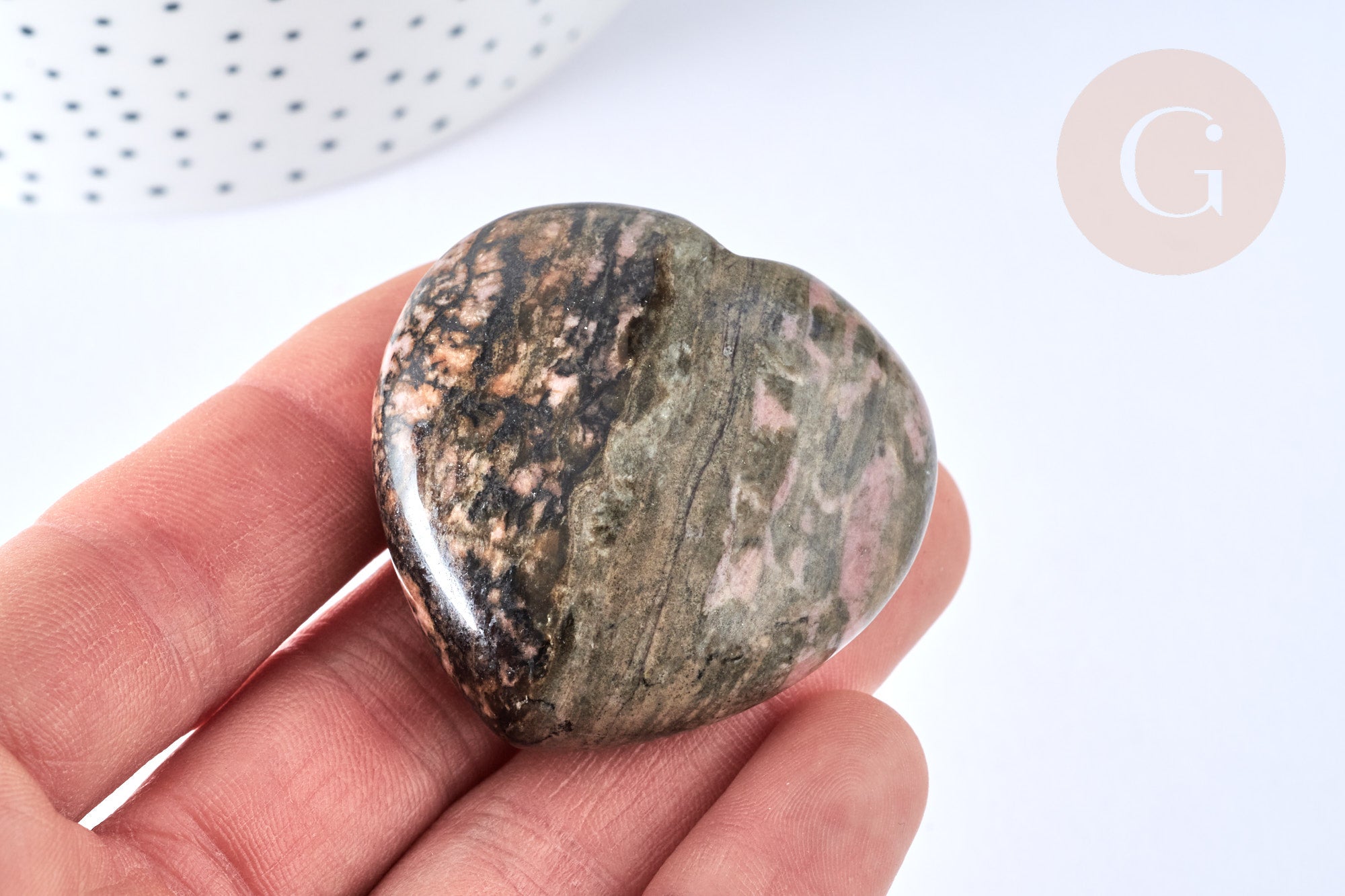 Corazones decorativos o de litoterapia sin perforar en jaspe sangre de drago natural.
