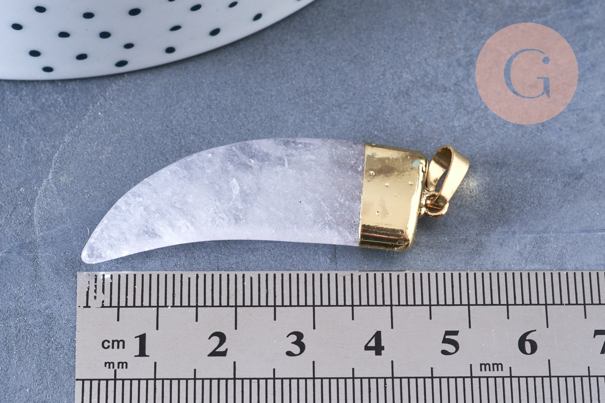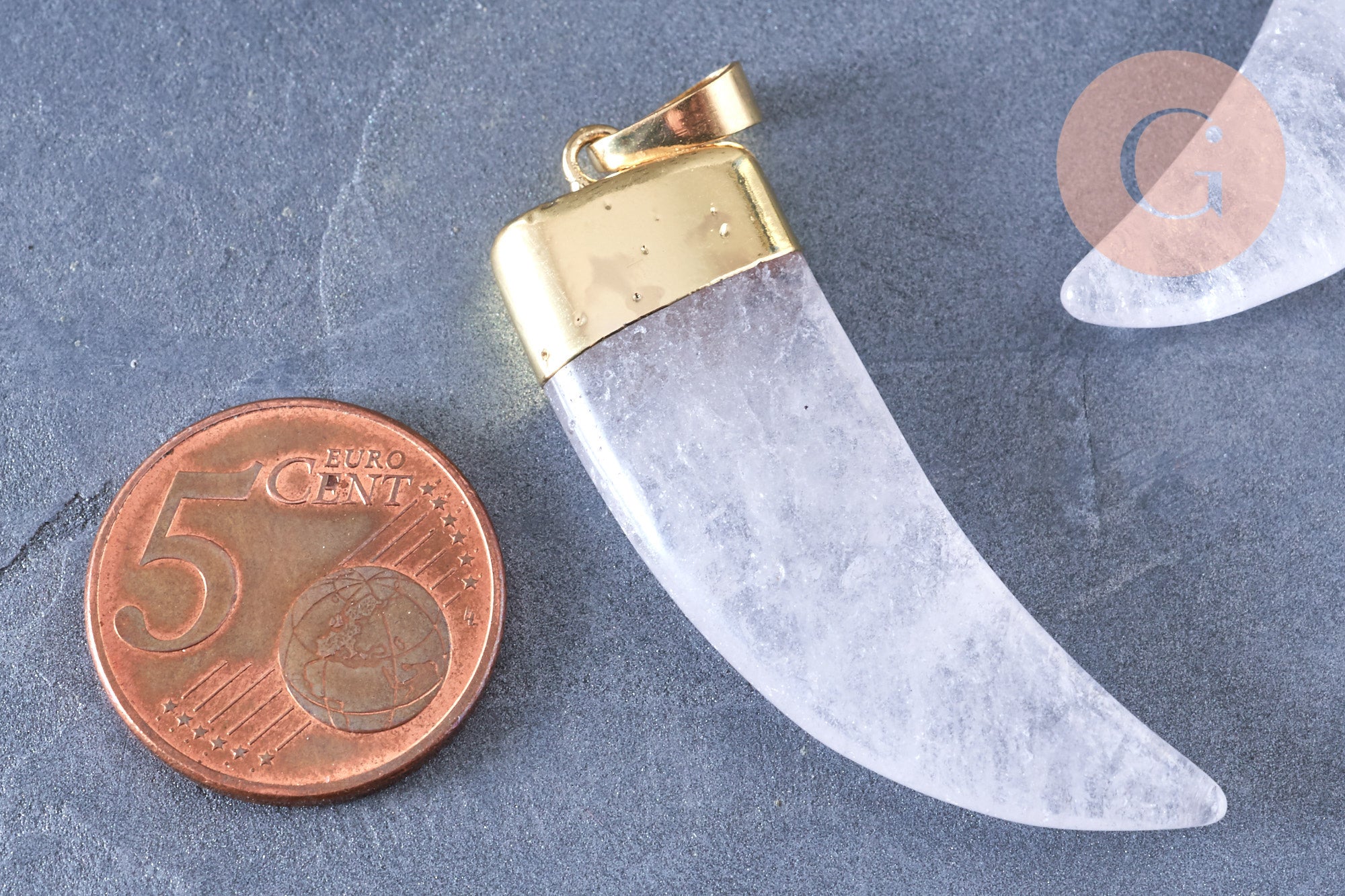 Colgante de cuerno de cristal de roca de 49 mm, colgante de joyería, colgante de cuarzo natural, colgante de piedra, x1 (G6651)