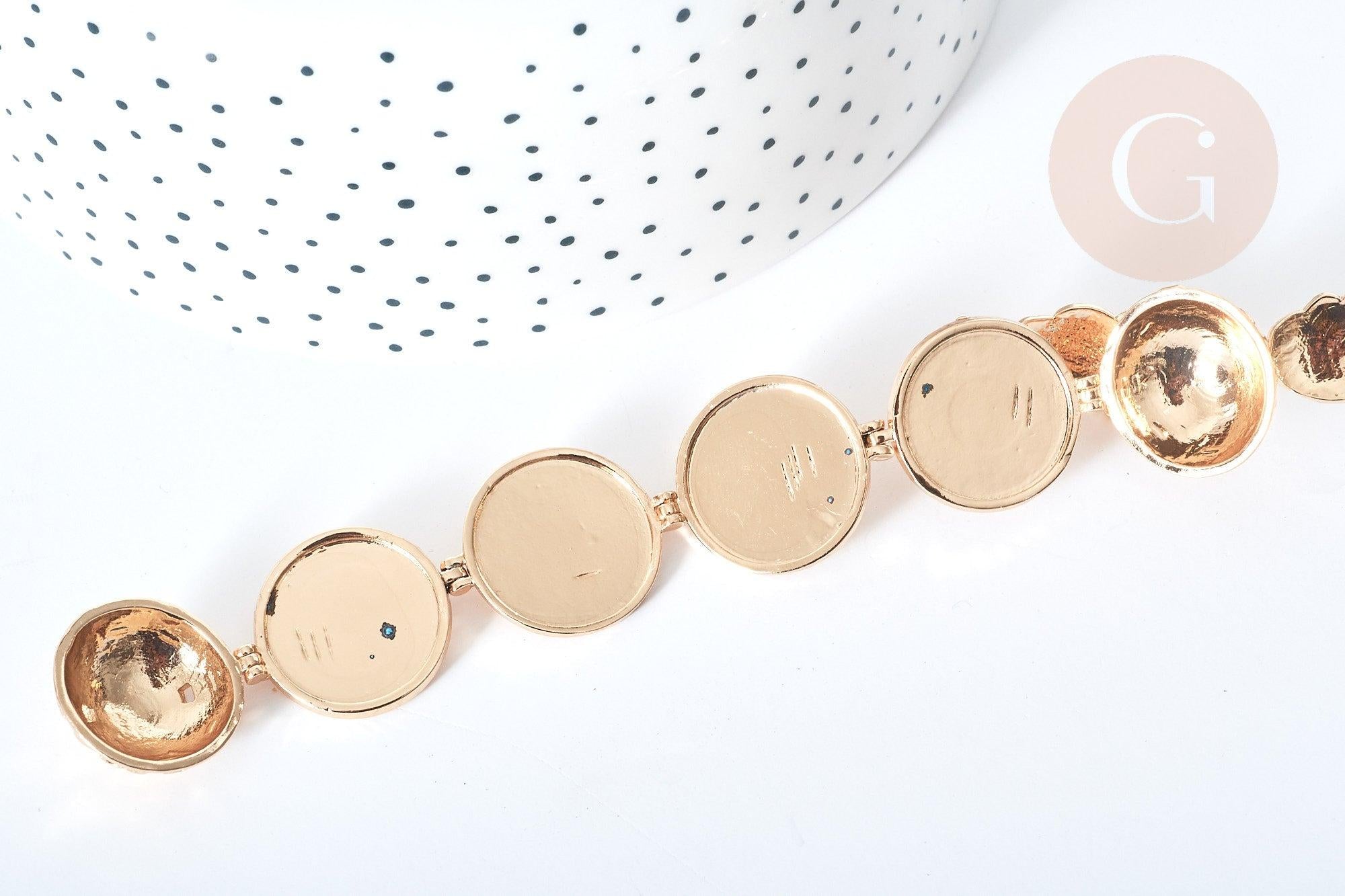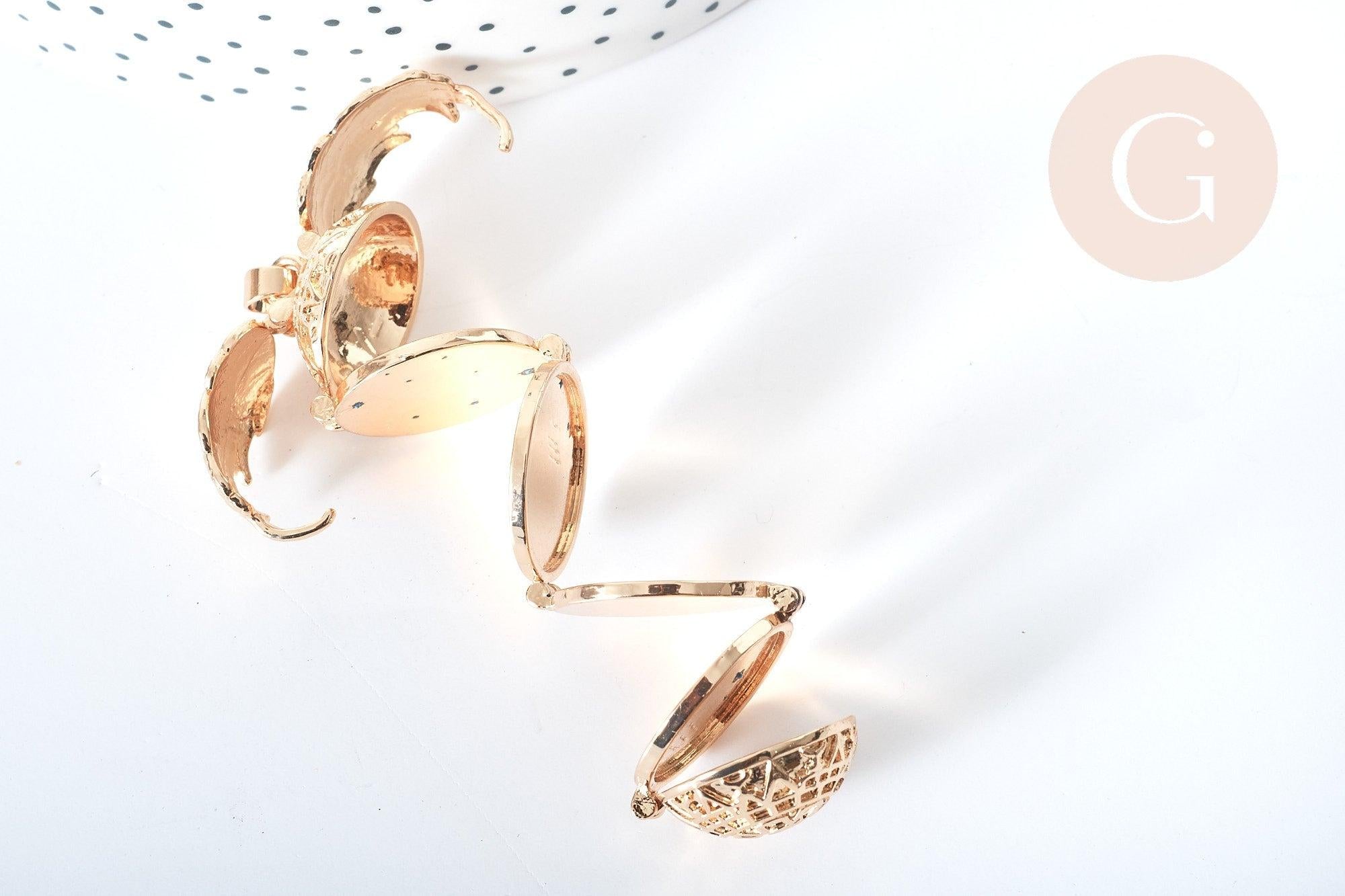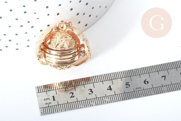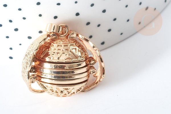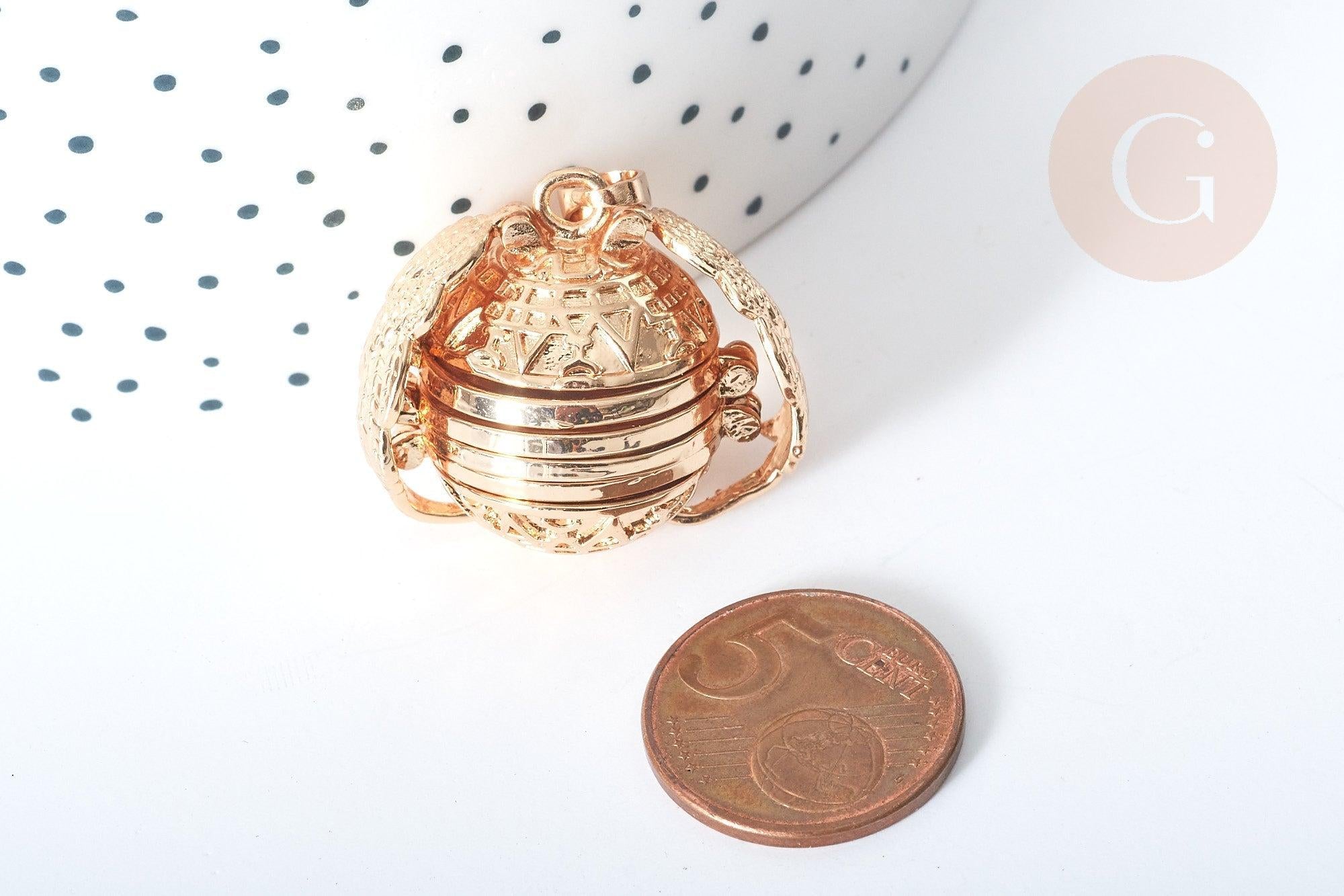 Colgante redondo, alas desplegables, latón bañado en oro, 25,5 mm, portafotos, joya original, x1 (G8065)
