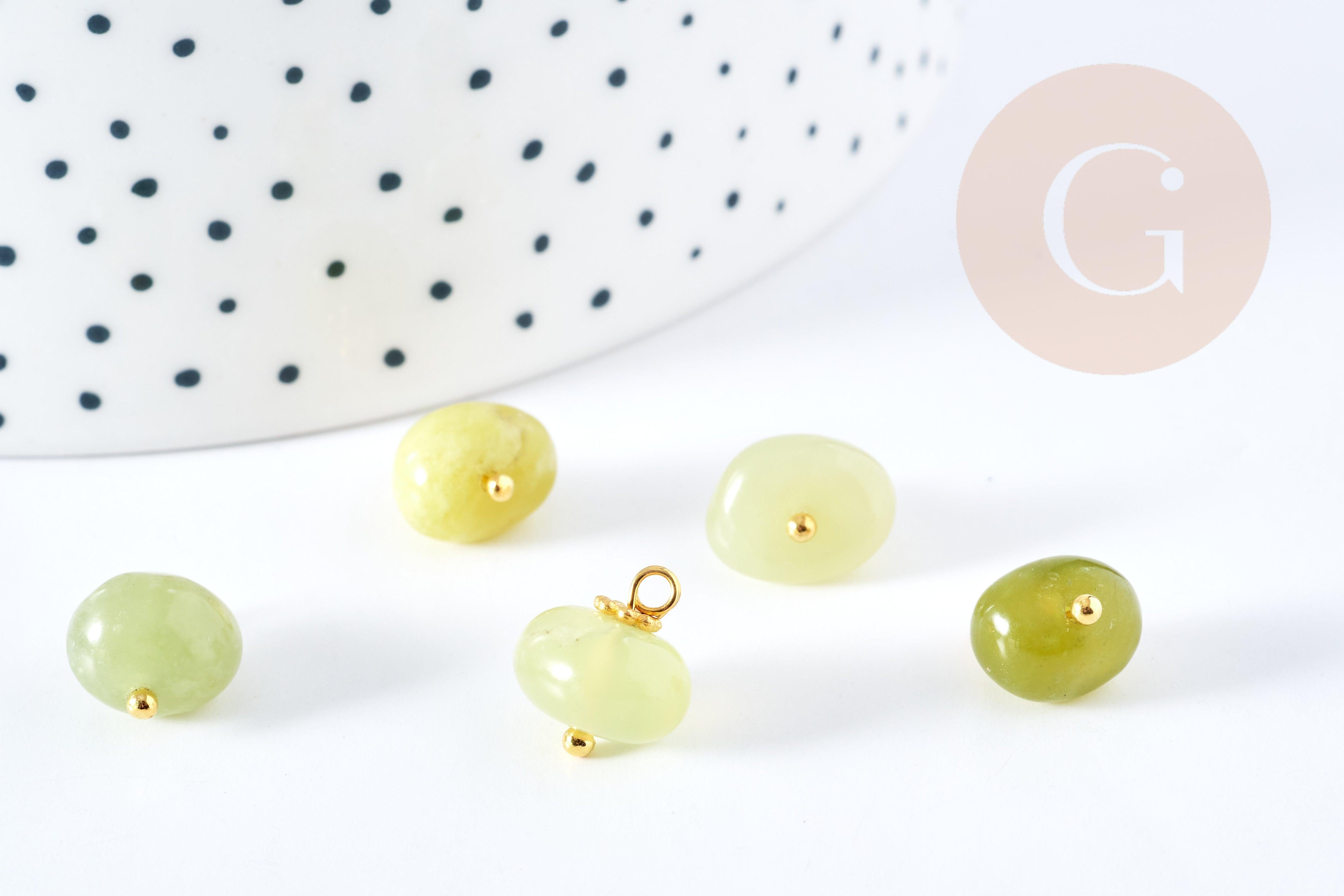 Colgante de jade natural oliva latón dorado 13-14mm, colgante de creación de joyería de piedra natural, x1 G8643