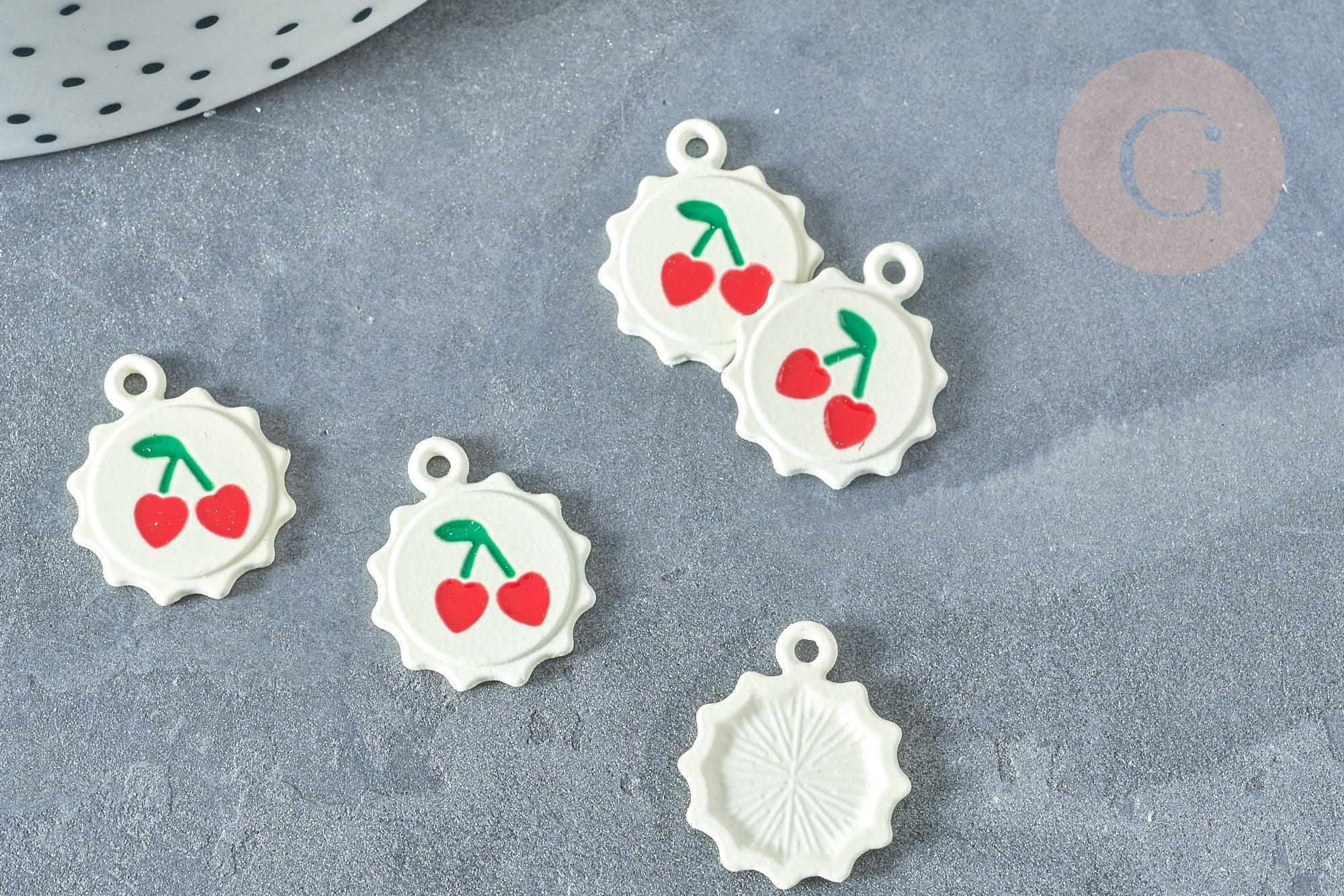 Déjate seducir por este colgante que representa un sol, esmaltado en blanco y su cereza, con clip en la parte superior, ideal para realizar tu bisutería DIY .