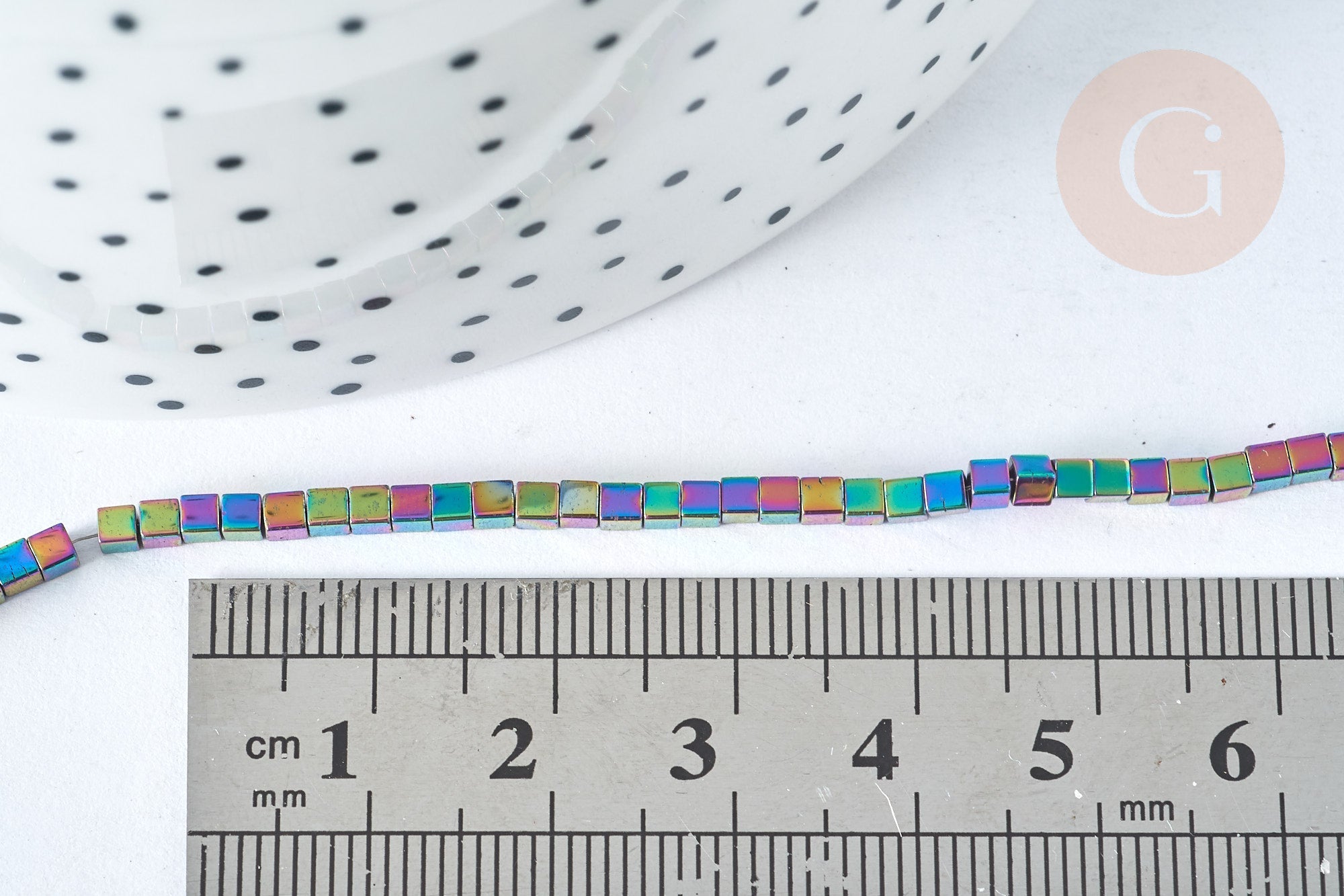 Perle cube hématite de synthèse multicolore 2mm, création bijoux DIY, le fil de 39cm, X1 (G7407)