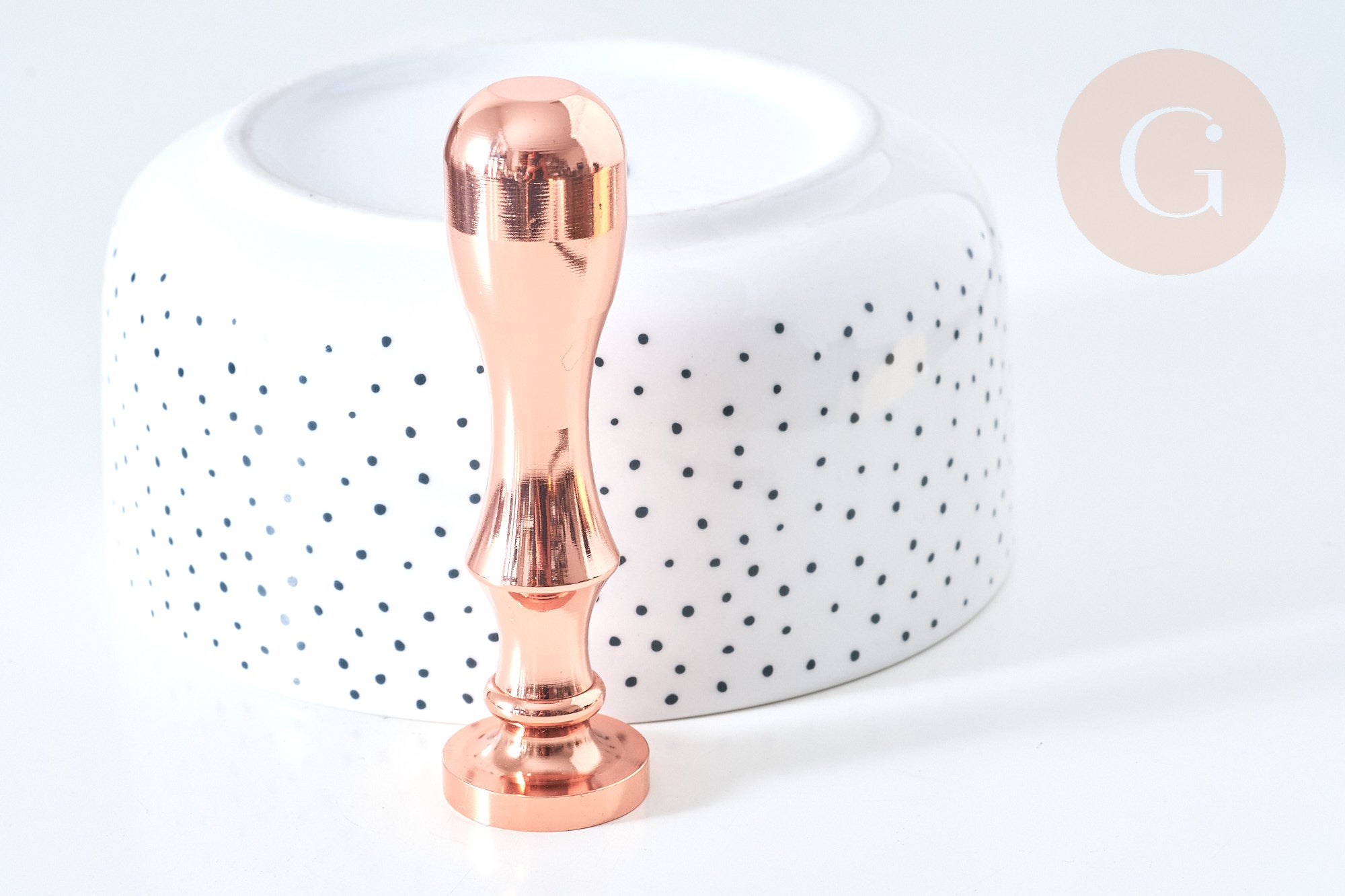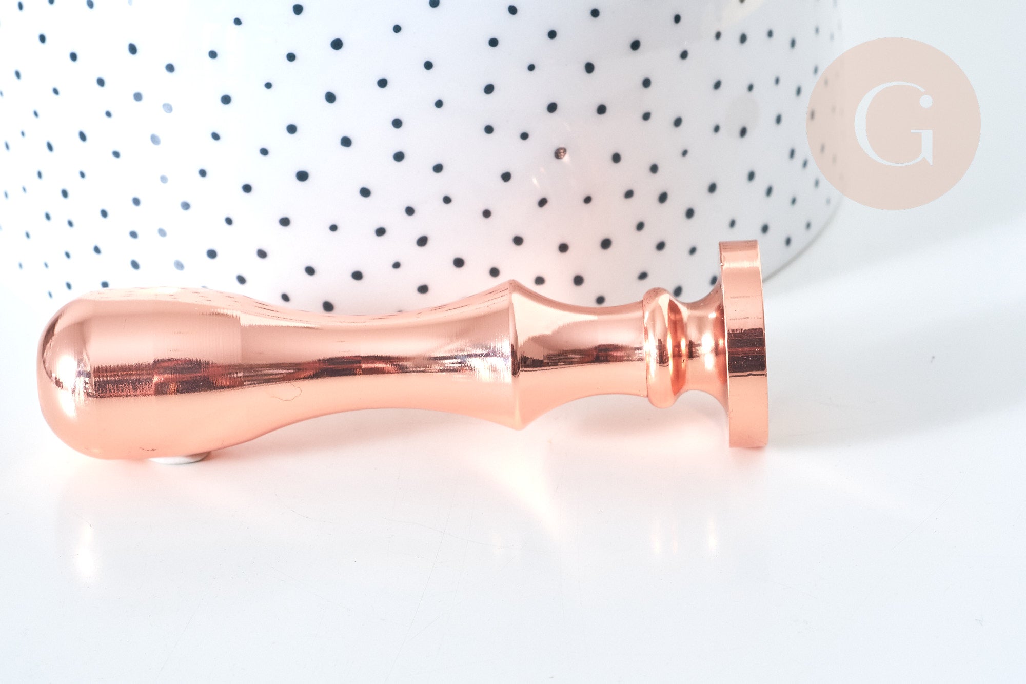 Para realizar tus invitaciones y tus propios sellos, adopta la técnica de la cera derretida con este sello de metal en color oro rosa.