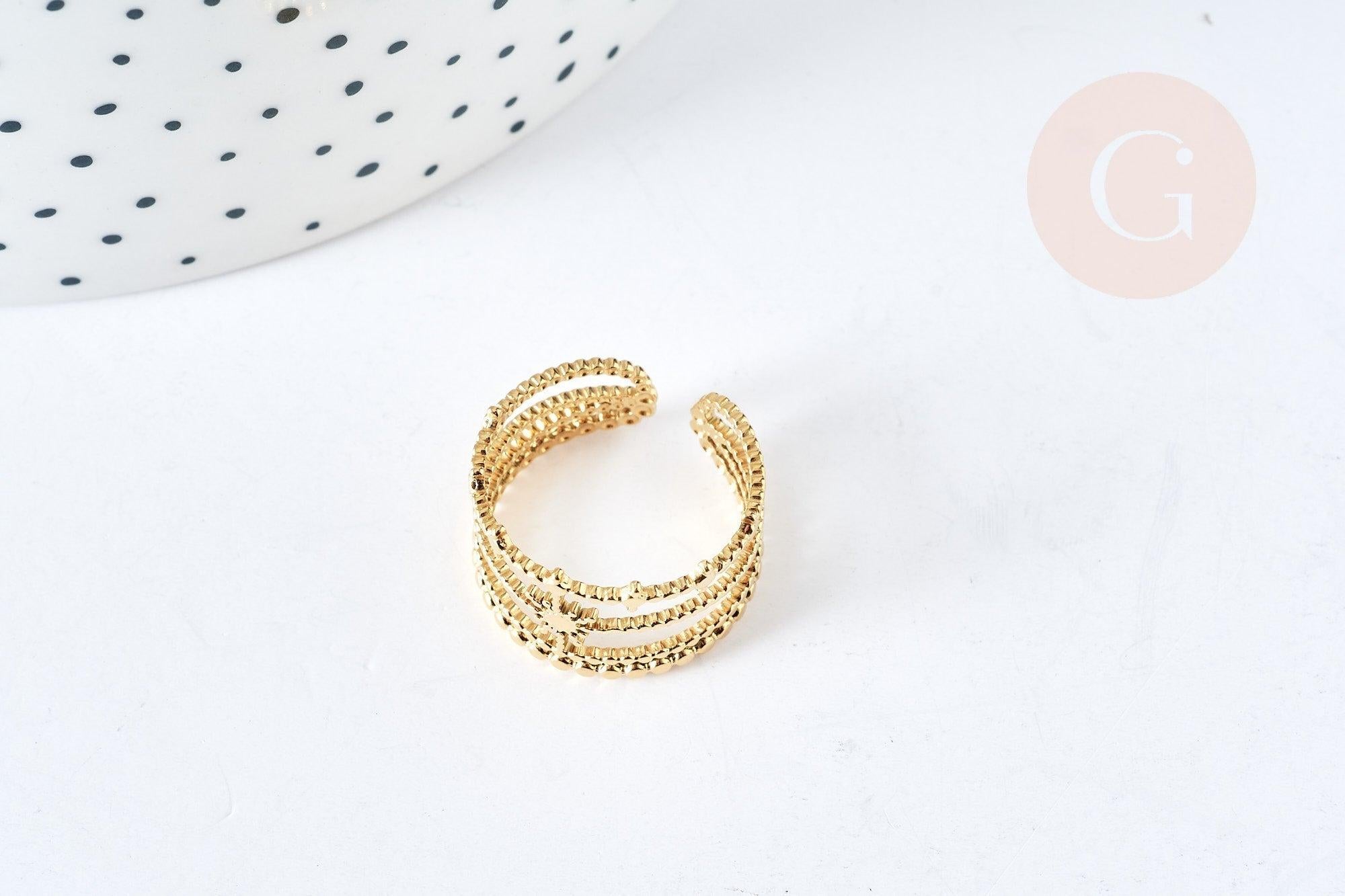 Déjate seducir por este elegante anillo de estrella en acero inoxidable dorado , compuesto por tres finos anillos soldados y decorado con una estrella central. Refinado y delicado, añadirá un toque de brillo a todos tus conjuntos, ya sea de día o de noche.