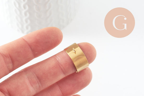 Bague réglable personnalisable acier doré inoxydable avec anneau 18mm, x1 (G9607)