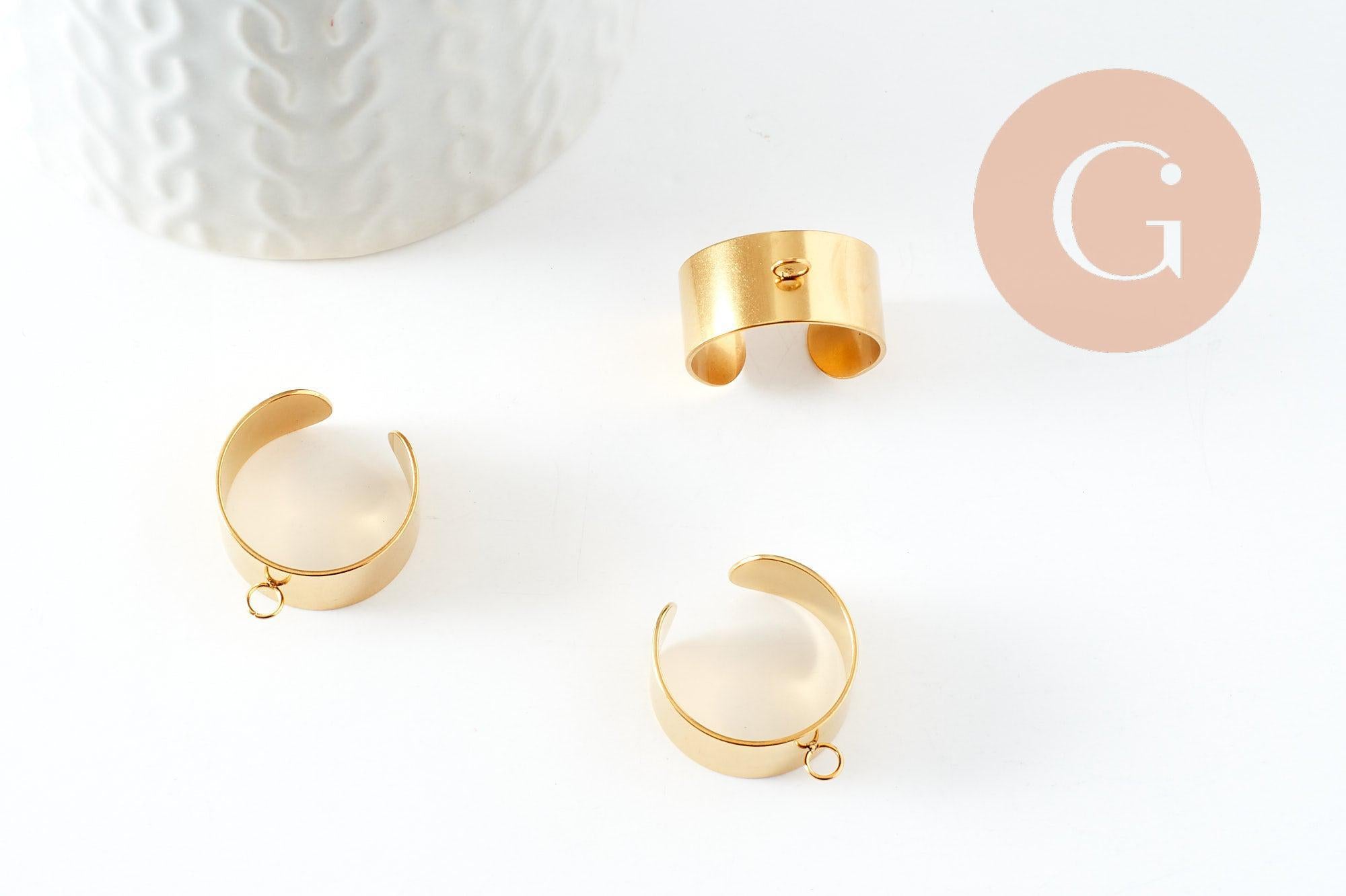 Anillo ajustable personalizable de acero inoxidable dorado con anilla de 18 mm, x1 (G9607)