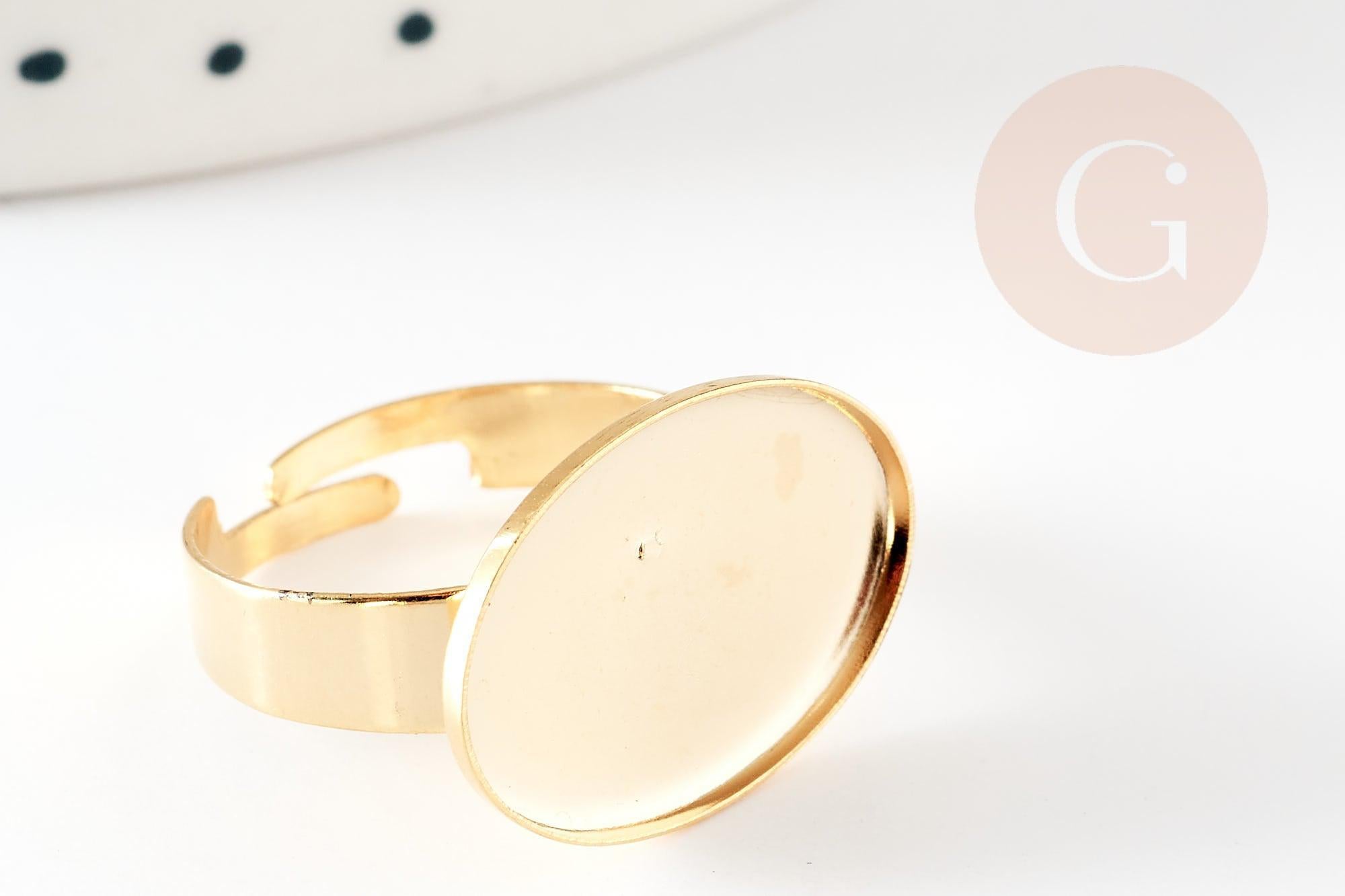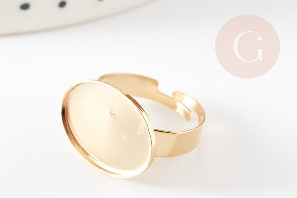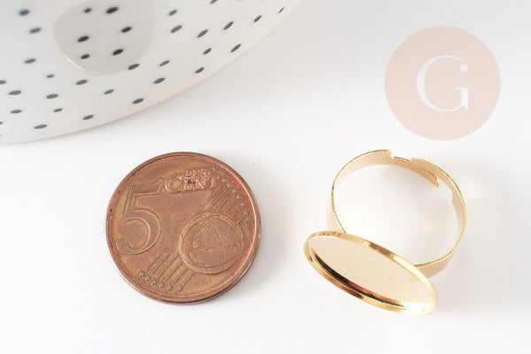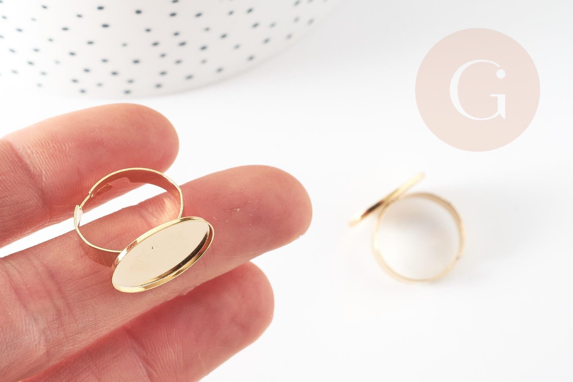 Anillo ajustable para cabujón 18,5x13,5 mm en acero inoxidable dorado, un soporte de anillo personalizable para la creación de joyas, 17 mm, ambos
