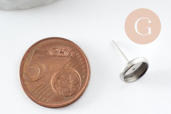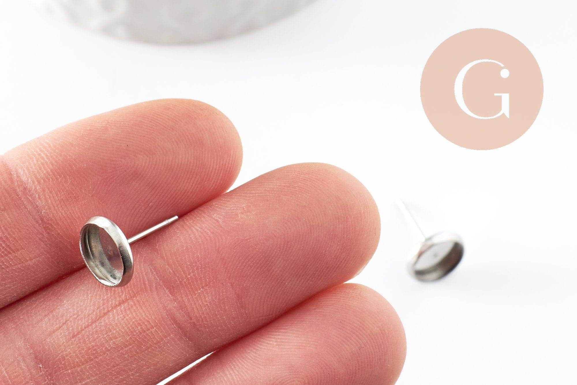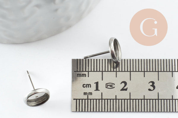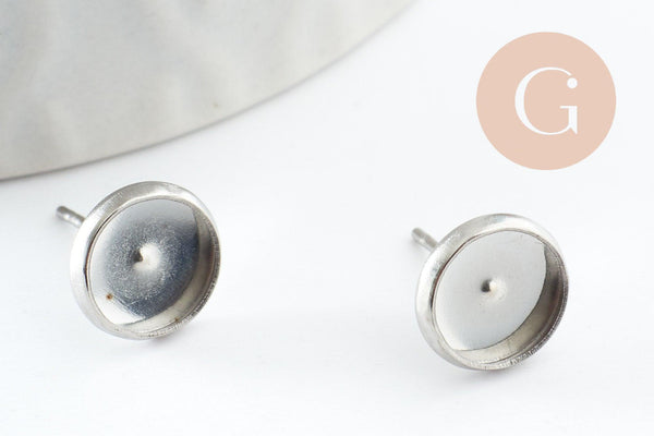 Clous-puces oreille support cabochon rond 8mm acier 304 inoxydable platine, x10 (G9597)