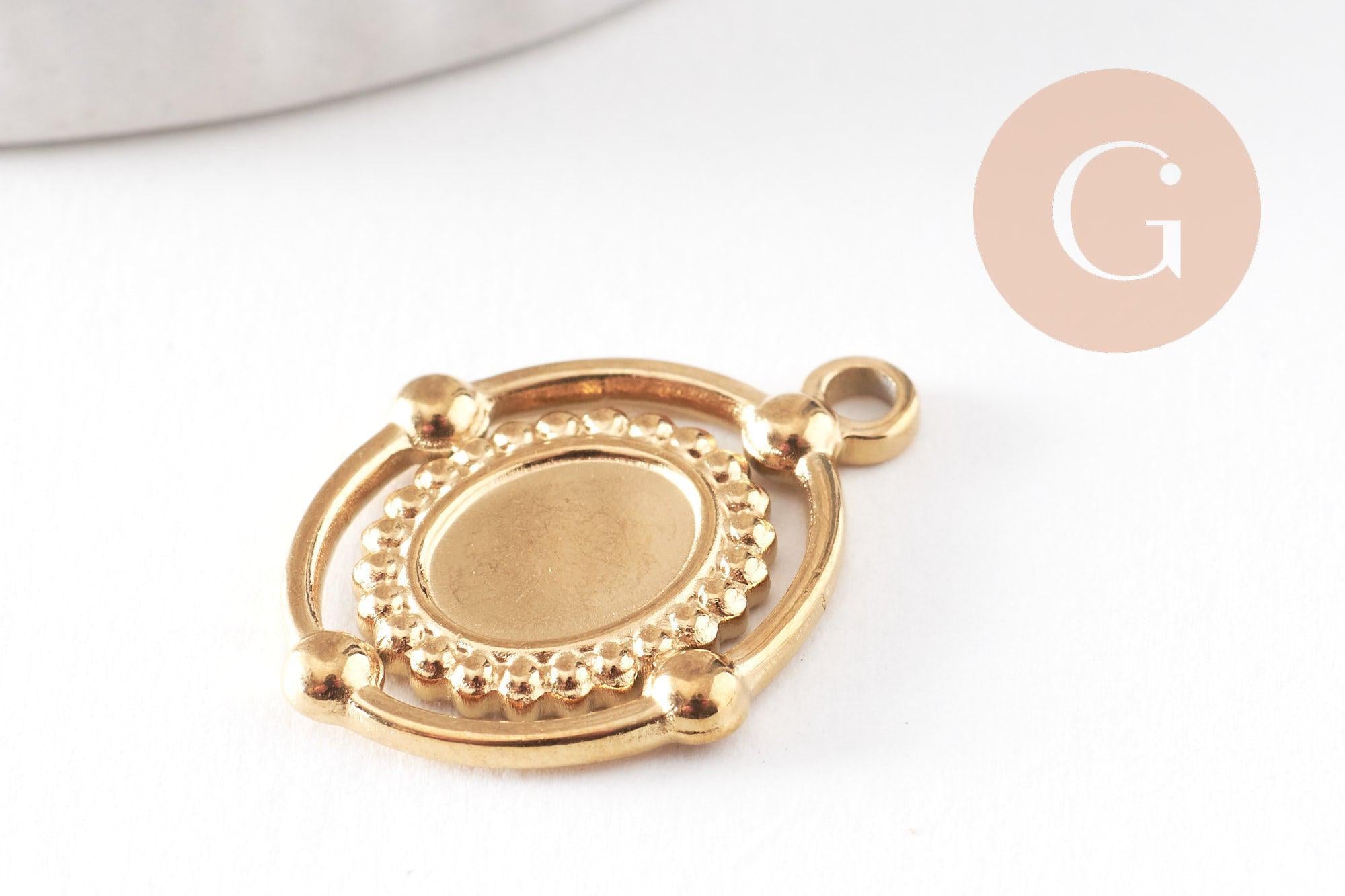 Pendentif ovale support cabochon 8x6mm acier 304 inoxydable doré, x1 (G9938)