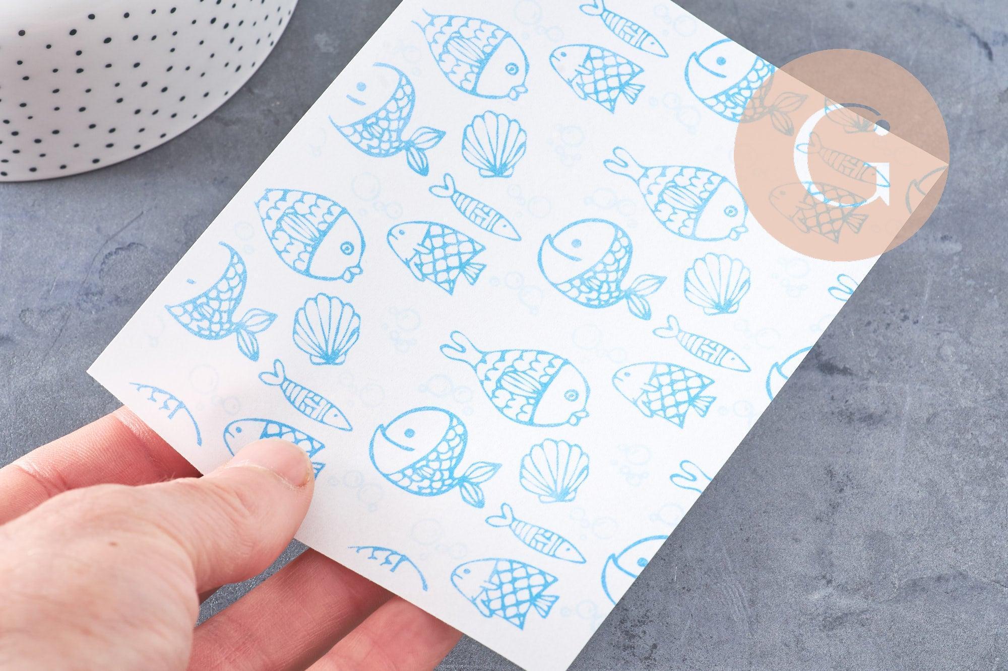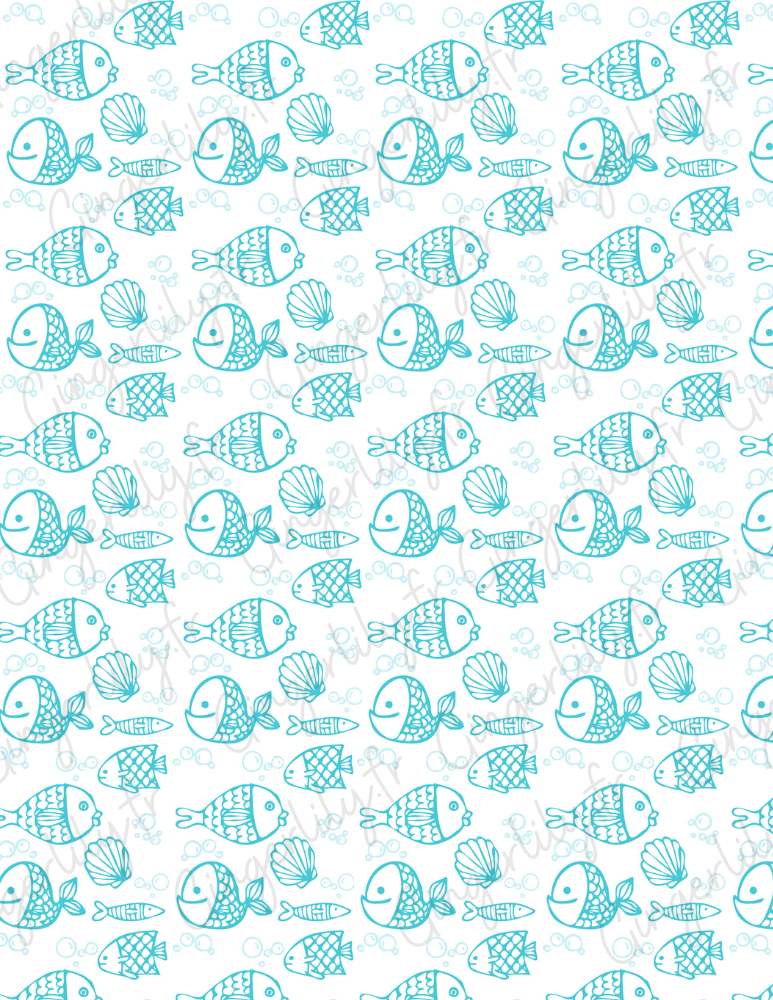 Lámina de transferencia de polímero – Peces grandes y conchas turquesas (14 x 10 cm), x1 (G10773)