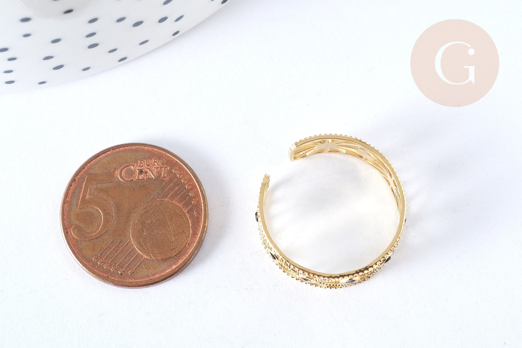 A very beautiful wide ring with finesse, in gold-plated steel, adjustable and decorated with small black enamel dots, on a stainless steel support. A timeless and very chic jewel, which will accompany you every day. Stainless steel is a highly...