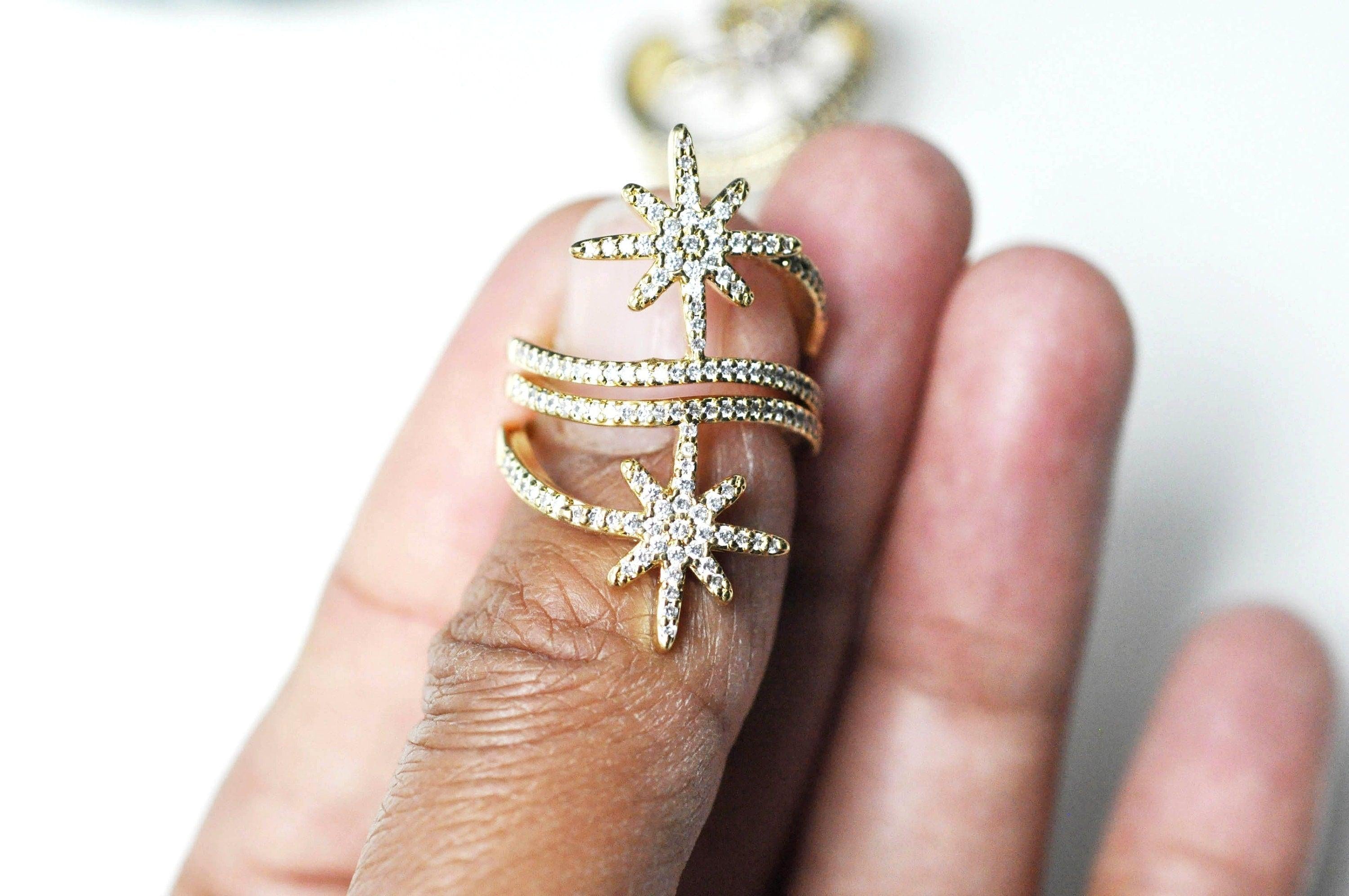 EP-Adjustable brass ring with star and zircons, 16.5mm, x1 (G4242)