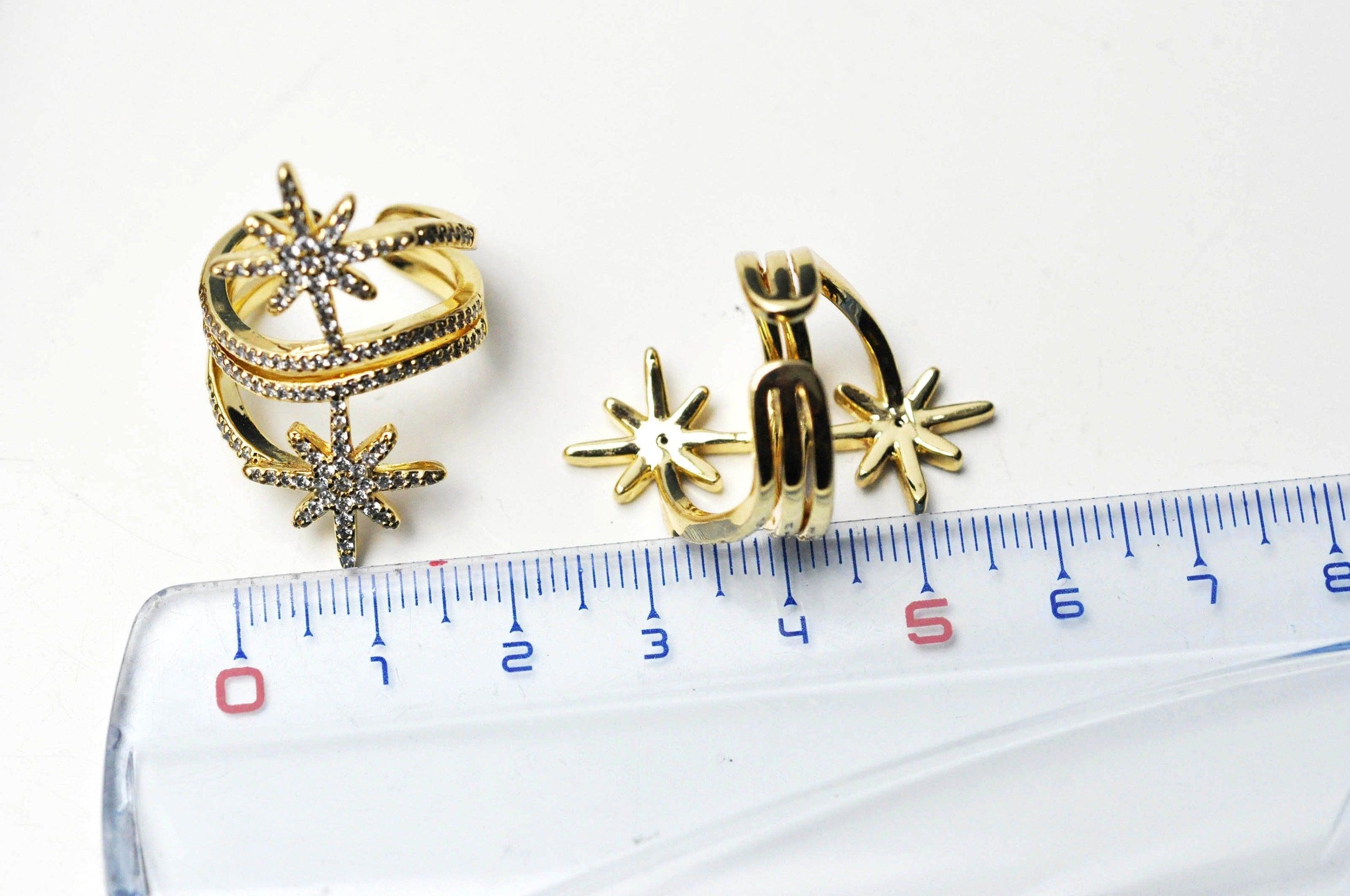 Adjustable brass ring with zircons, jewelry creation, women's ring, birthday gift, gold-plated brass ring holder, 16.5mm, unit A very beautiful ring in gold-plated brass decorated with a laurel leaf in white zircons. Width: 3mm Inner diameter: 16.5mm Star dimensions: 6~33mm...