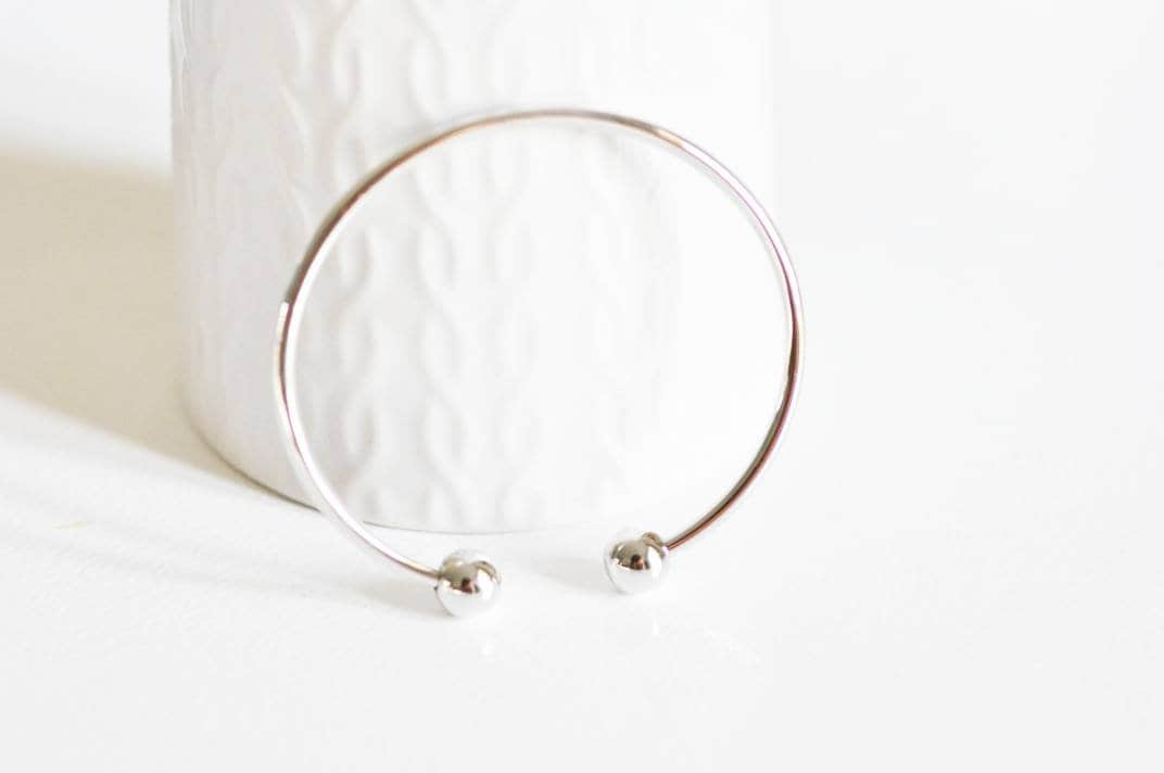 EP Adjustable bangle bracelet white gold finish balls finish, rhodium finish, white gold gilding, jewelry making, silver bracelet, 60mm-G2313