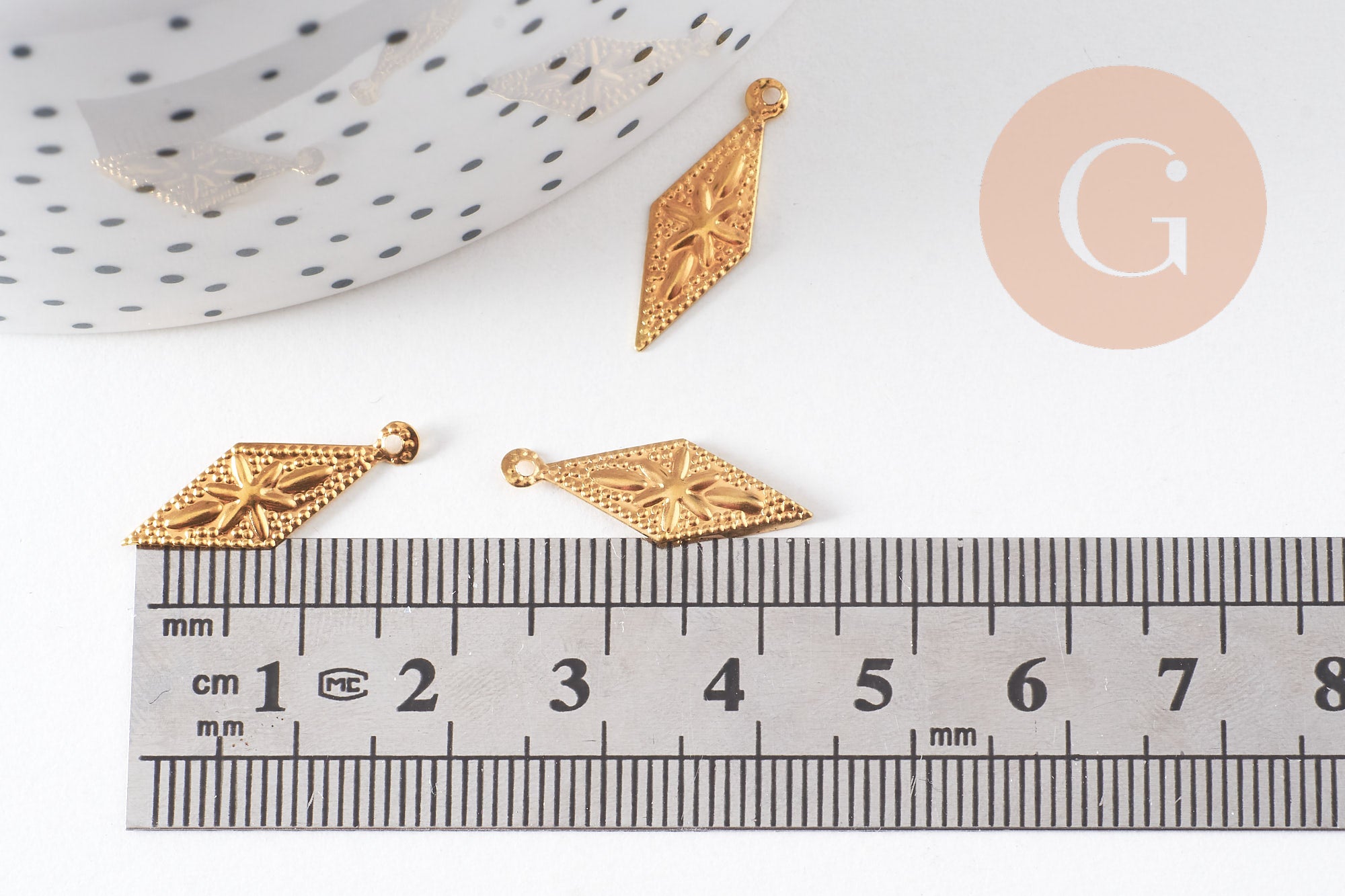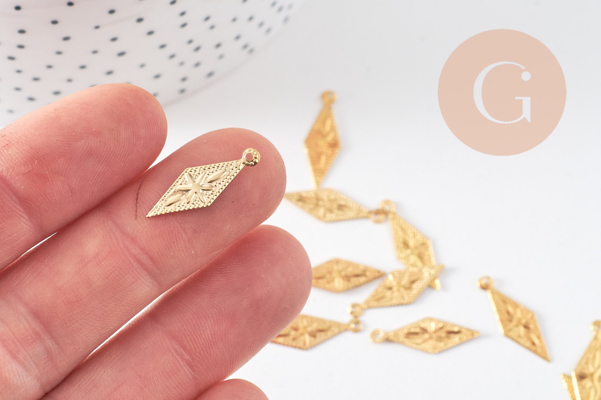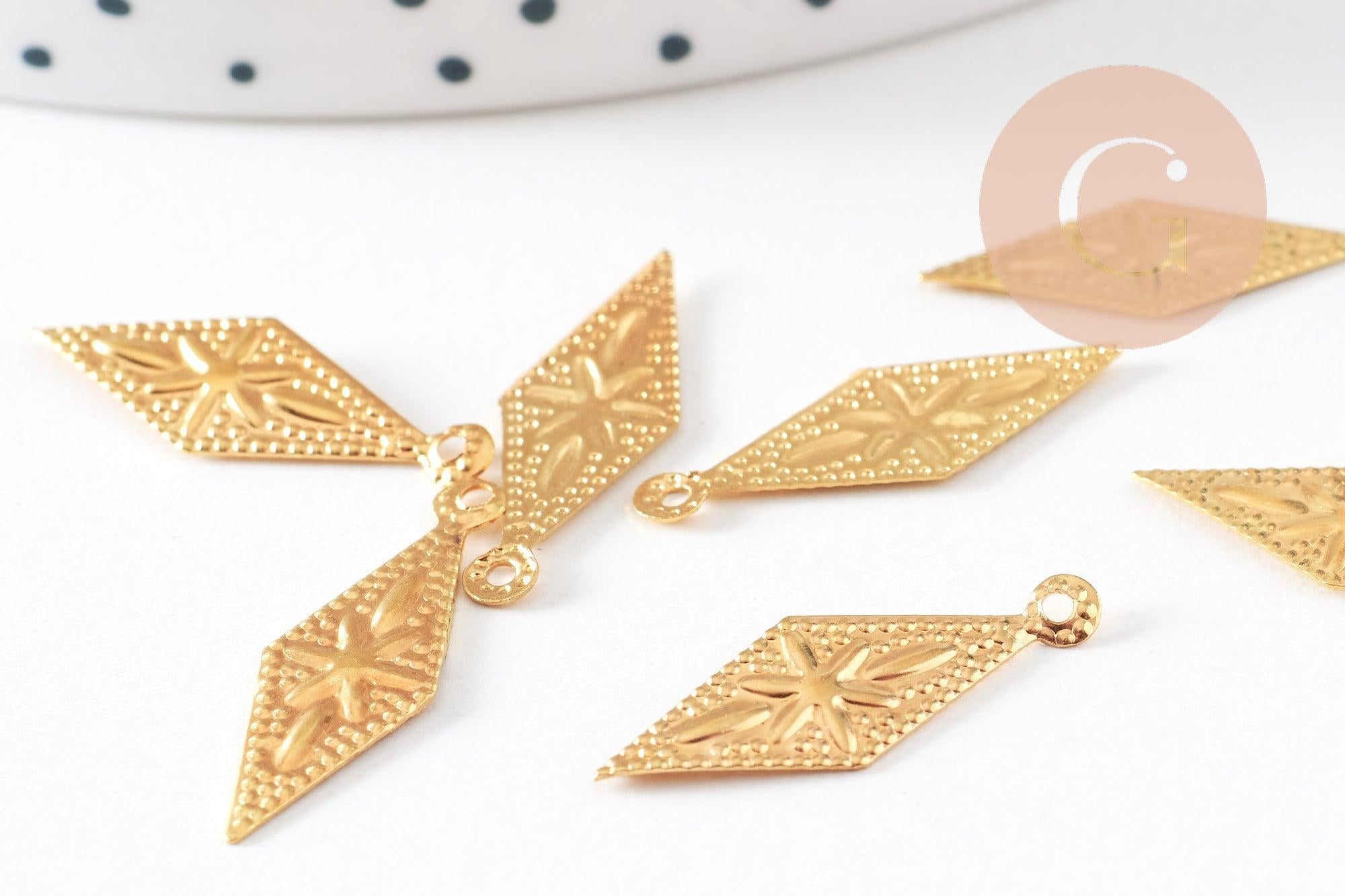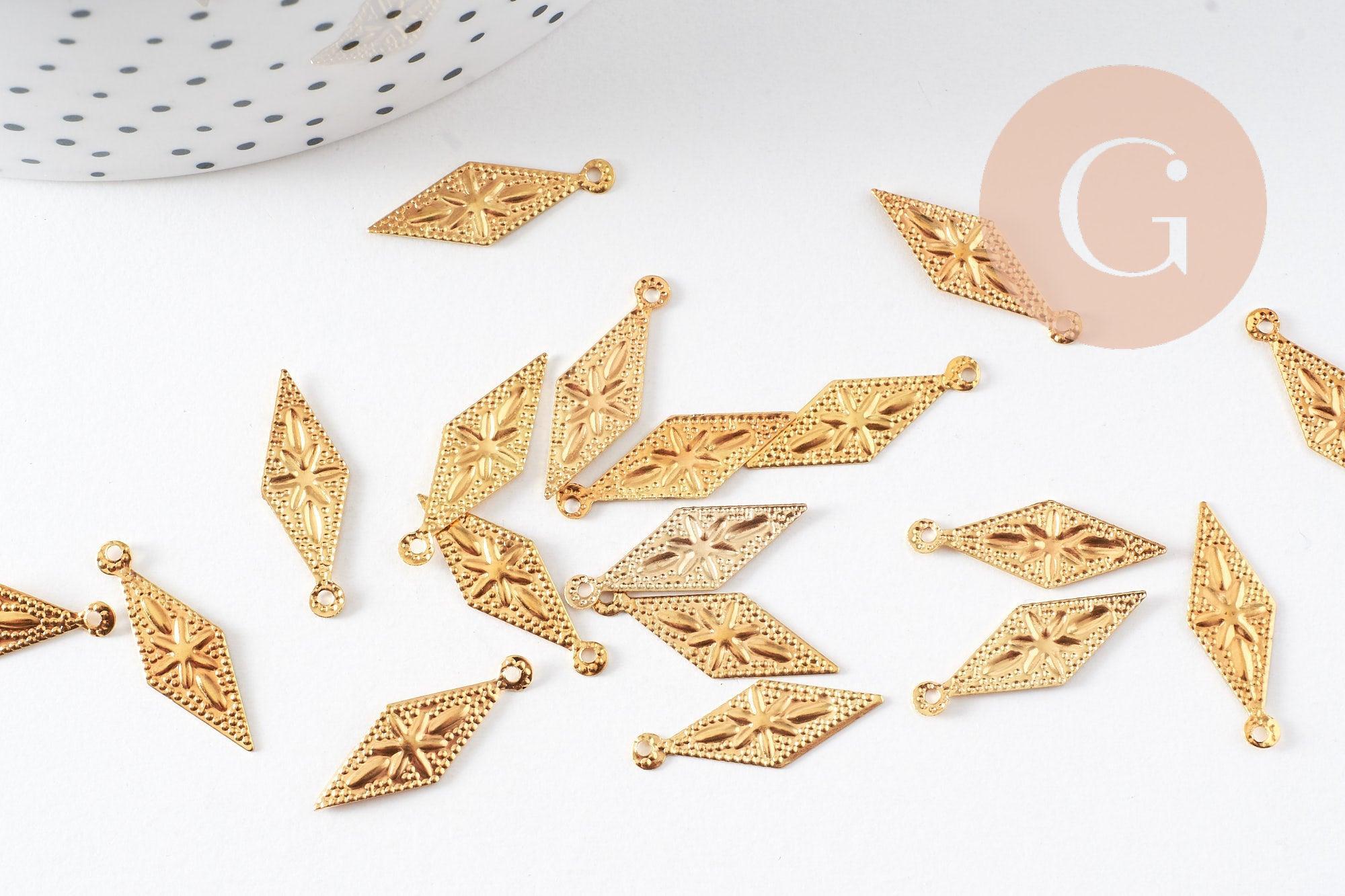 Gold-plated brass diamond charm, geometric pendant, jewelry creation, brass connector, geometric, 21mm, x 20-G1899