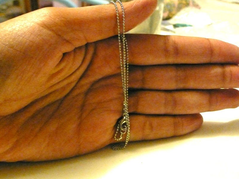 This complete platinum chain with nickel-colored faceted balls is sold complete with the clasp. It can be worn alone or stacked with other chains of different colors for a trendy look. You can add a colored pendant to create a...