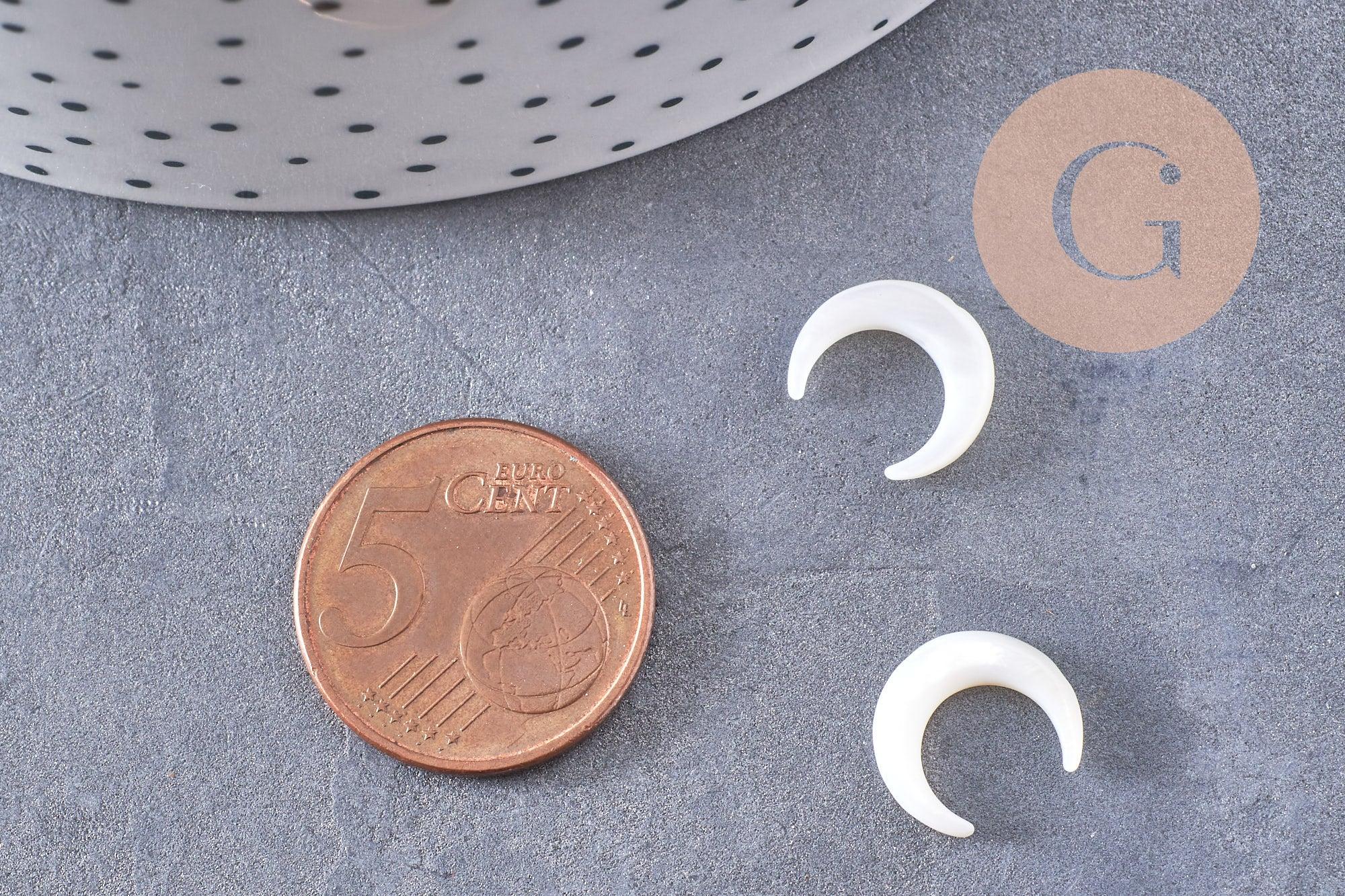 This natural white mother-of-pearl moon pearl , measuring 10x12 mm , has a pearly sheen with subtle, luminous reflections.
