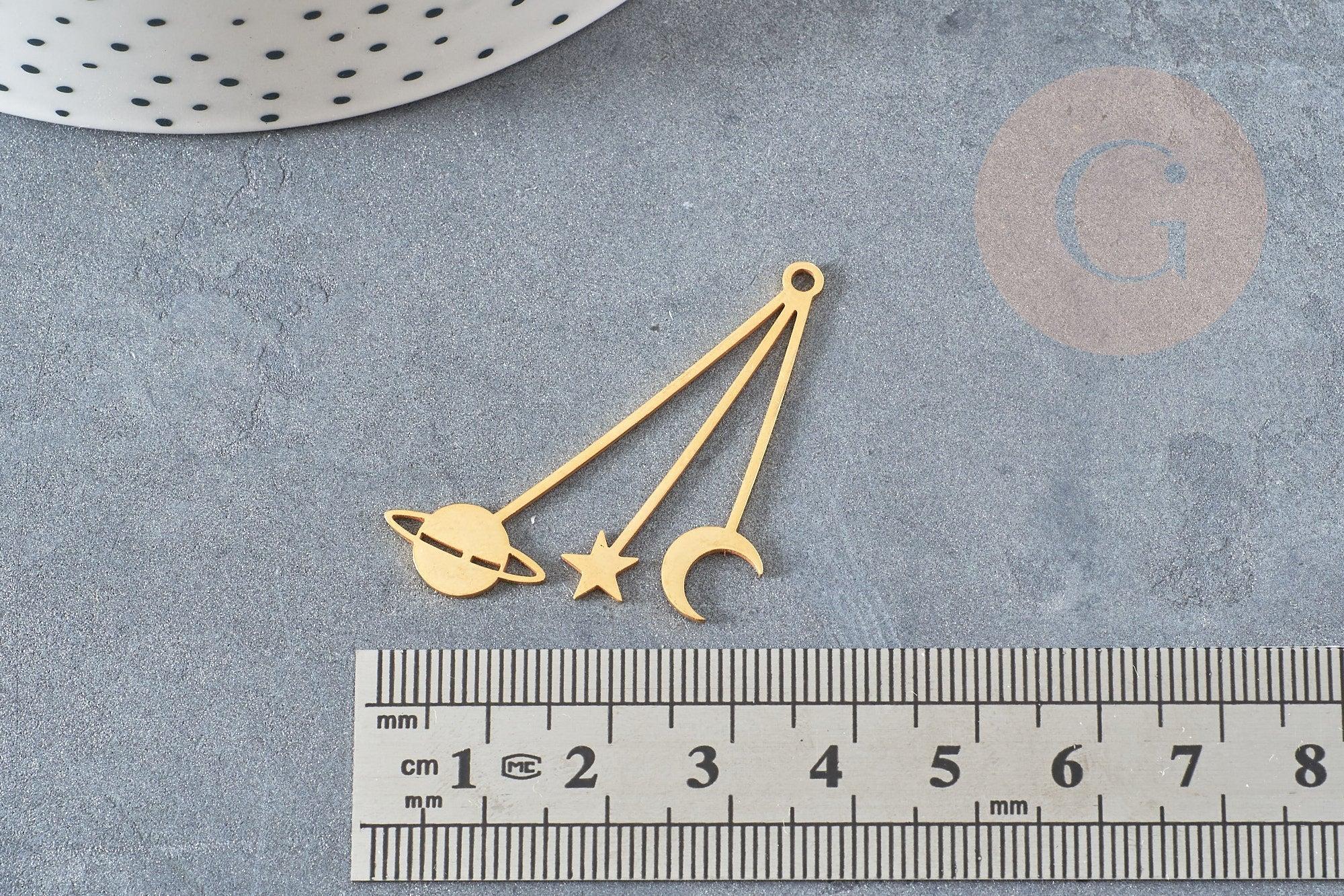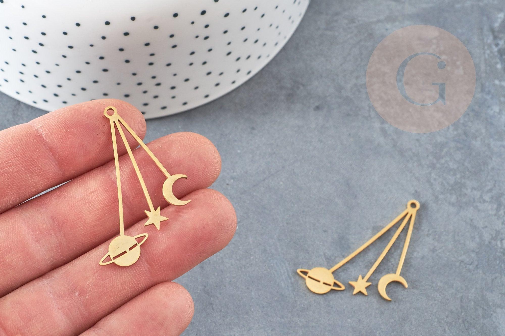 For your jewelry in the astral and constellation trend , here is a cute pendant in the shape of a rain of stars and planets in gold steel , which you can embellish with a stone or pearls.