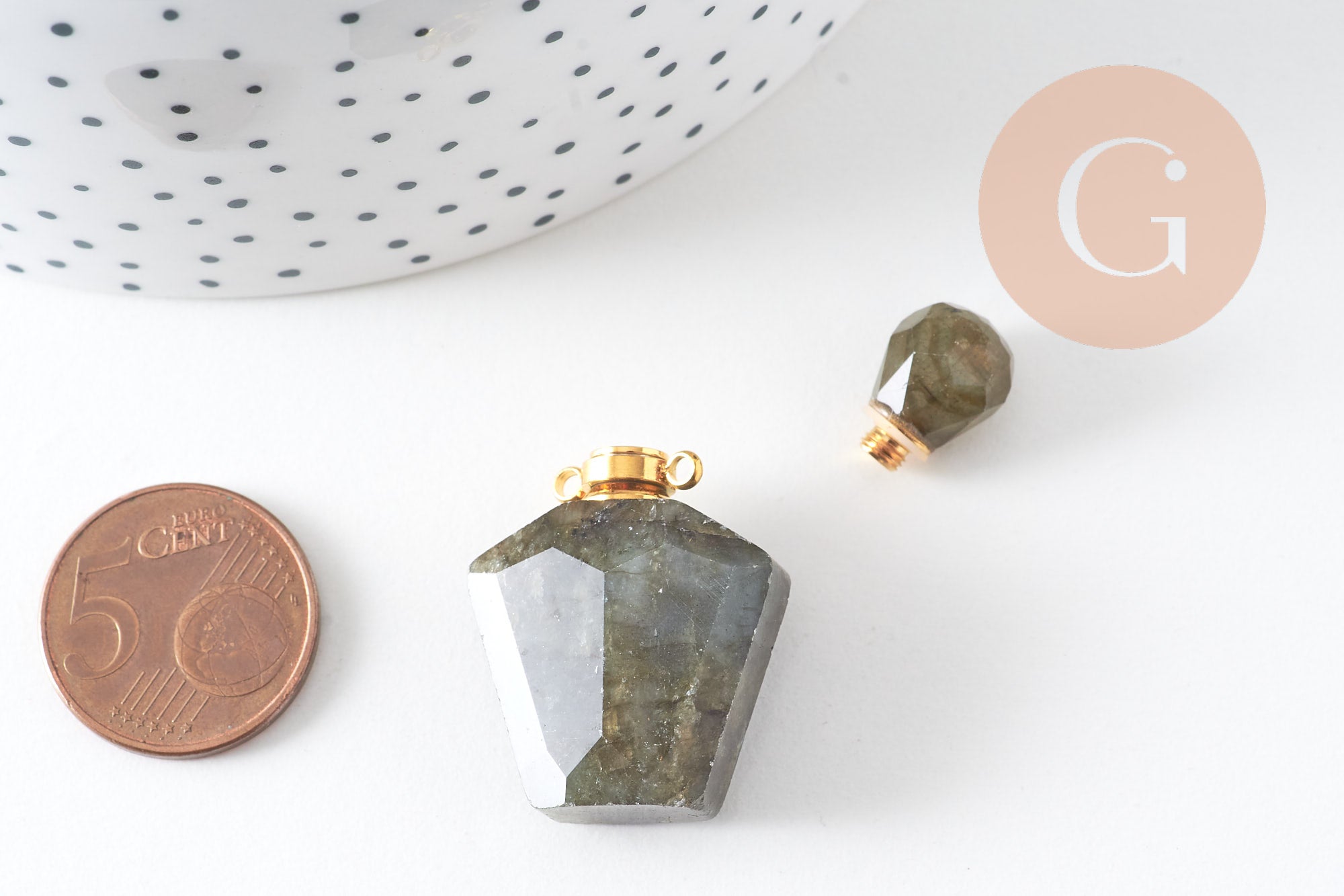Natural labradorite perfume bottle pendant, natural stone pendant, necklace pendant, natural labradorite pendant, 37mm, unit