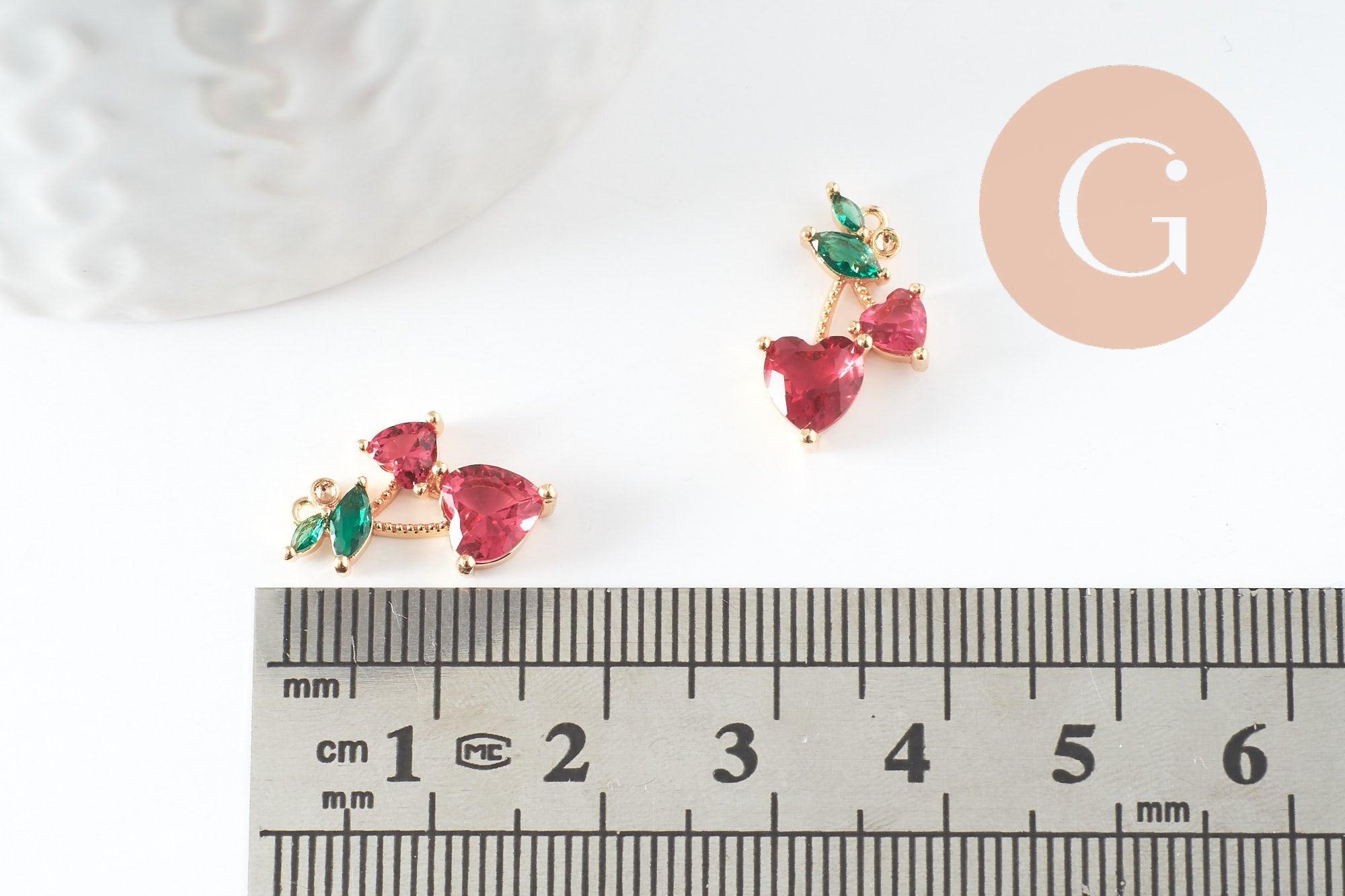 Create many DIY costume jewelry with this golden brass cherry pendant , decorated with green and red zircon crystals. A love of a pendant. The zircons fit the shape of the fruit.