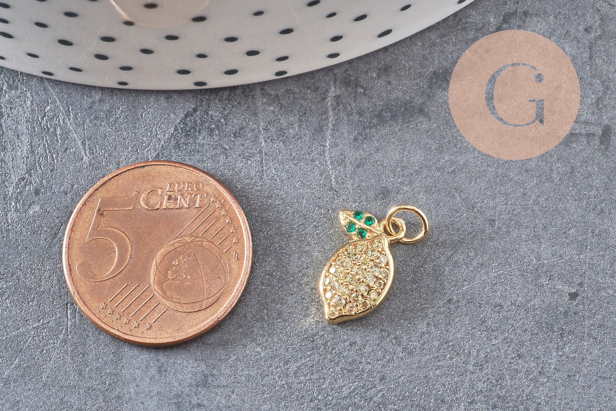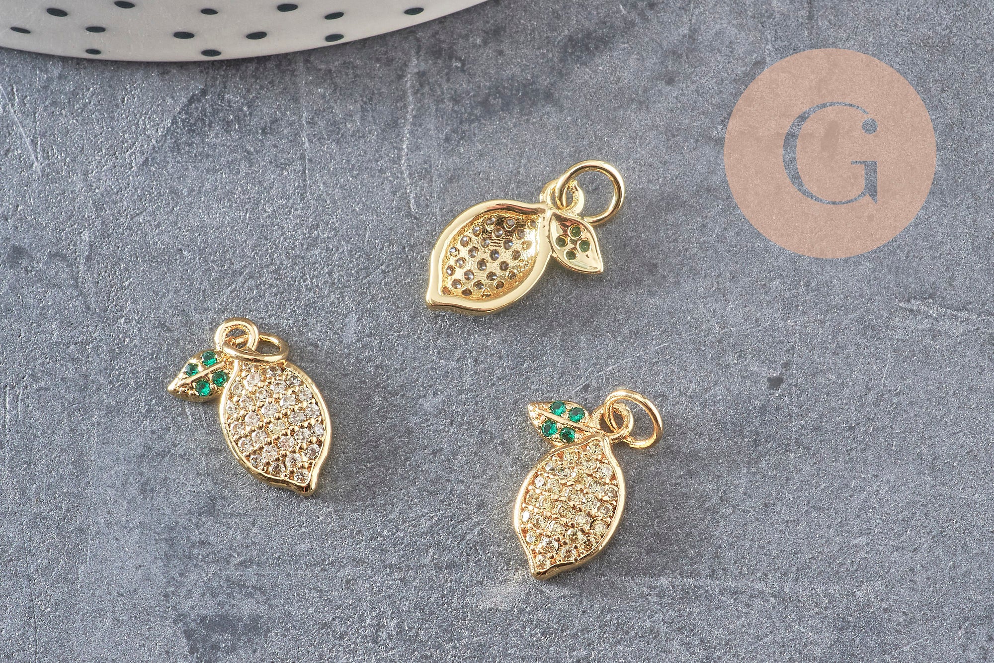 Other fruit-themed gold findings are available in the shop