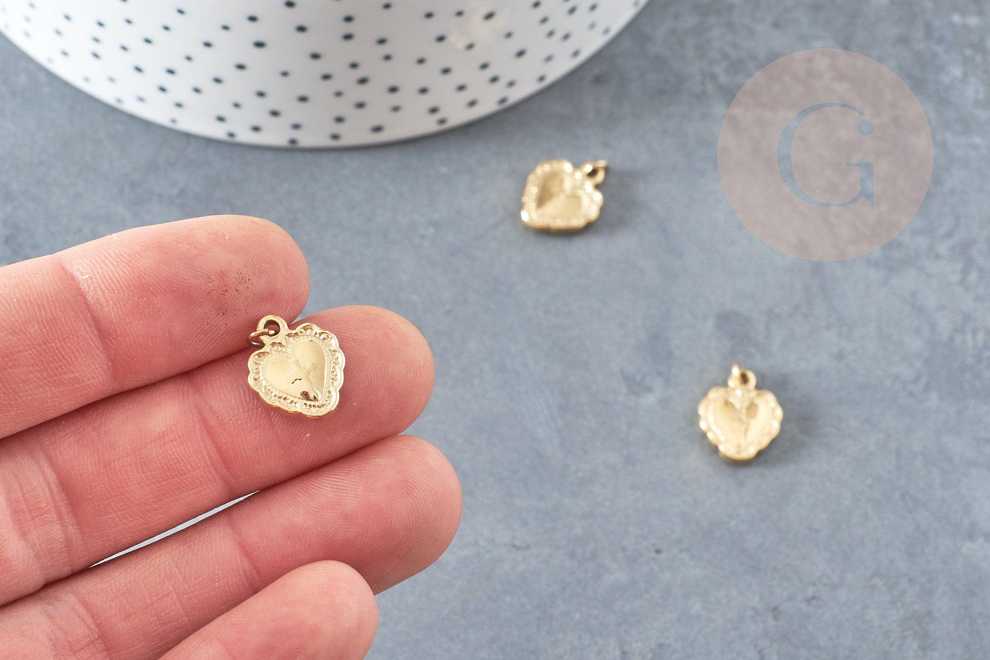 Get busy creating original and trendy DIY costume jewelry with this heart and cross charm. Hammered on the side for a beautiful finish! This one is made of gold stainless steel, a very good quality.