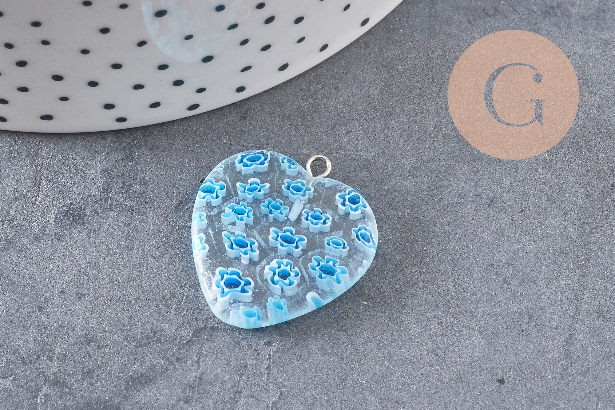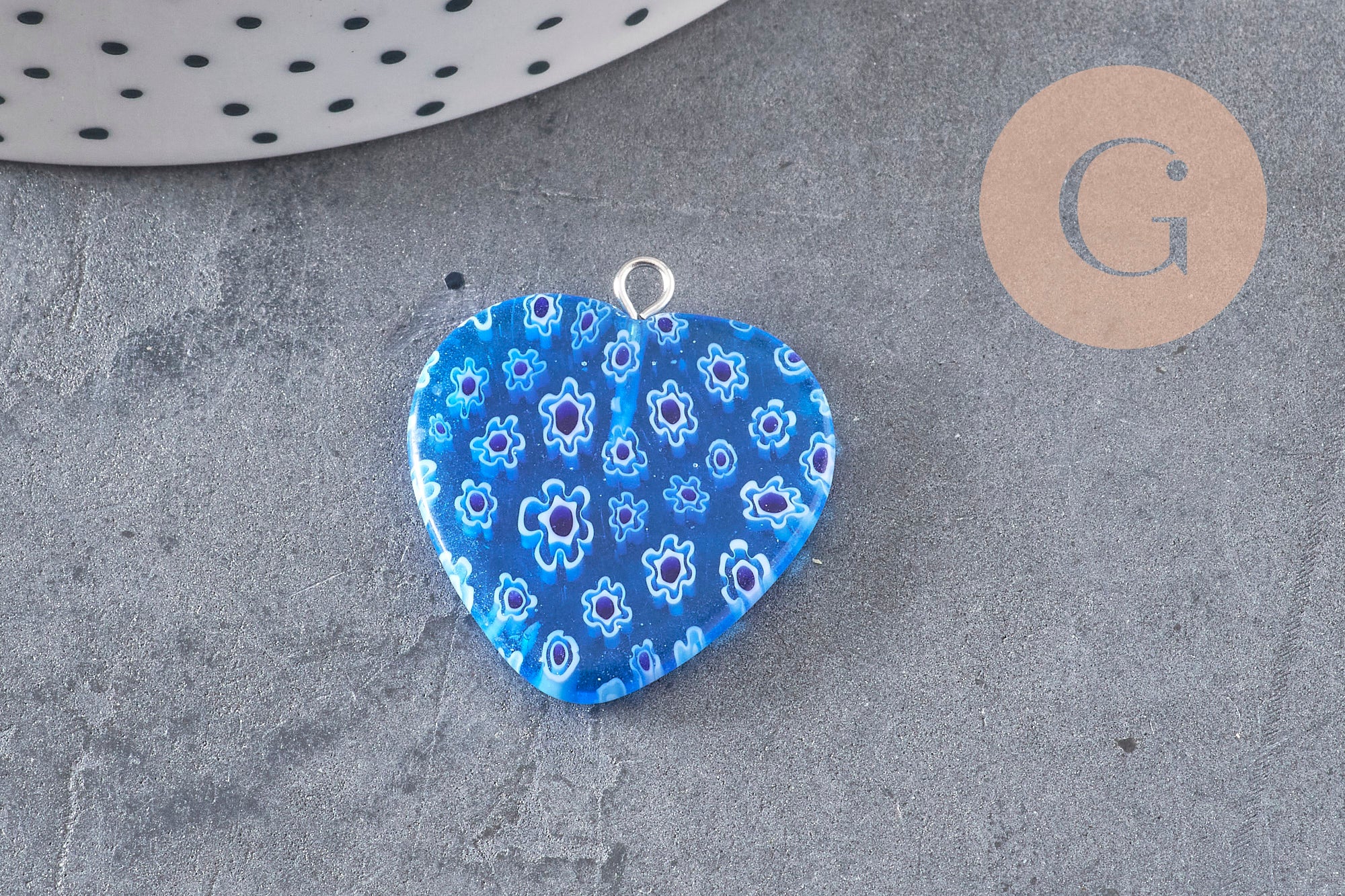 Add a touch of glass art to your creations with this stunning millefiori glass heart pendant, inspired by Venetian tradition . Each piece is handcrafted and features a mosaic of colorful floral motifs, creating a unique and charming piece of jewelry.