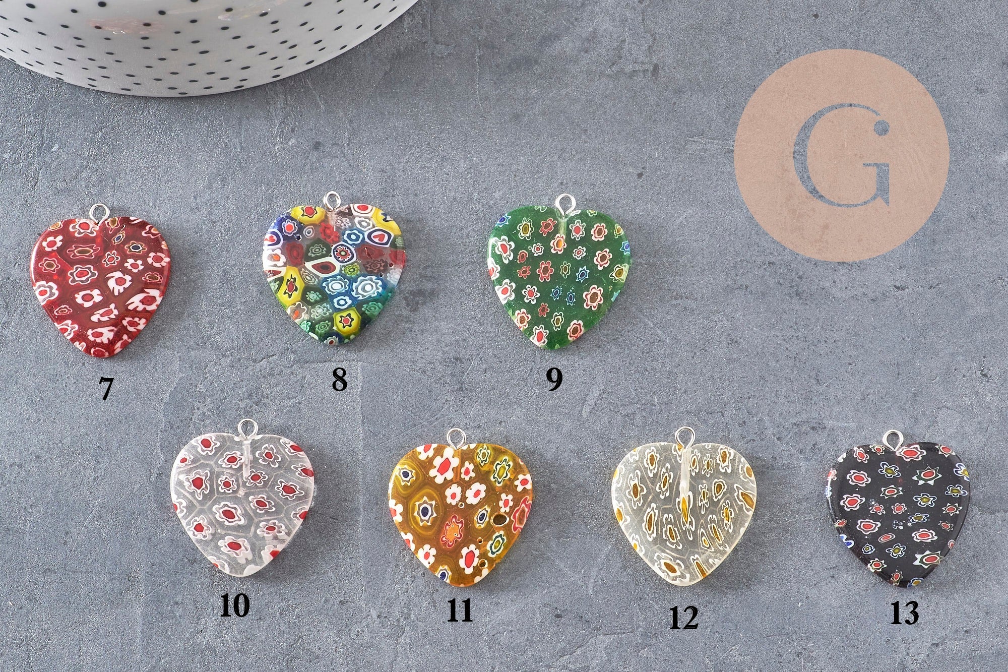 • Material: millefiori glass (Murano style)