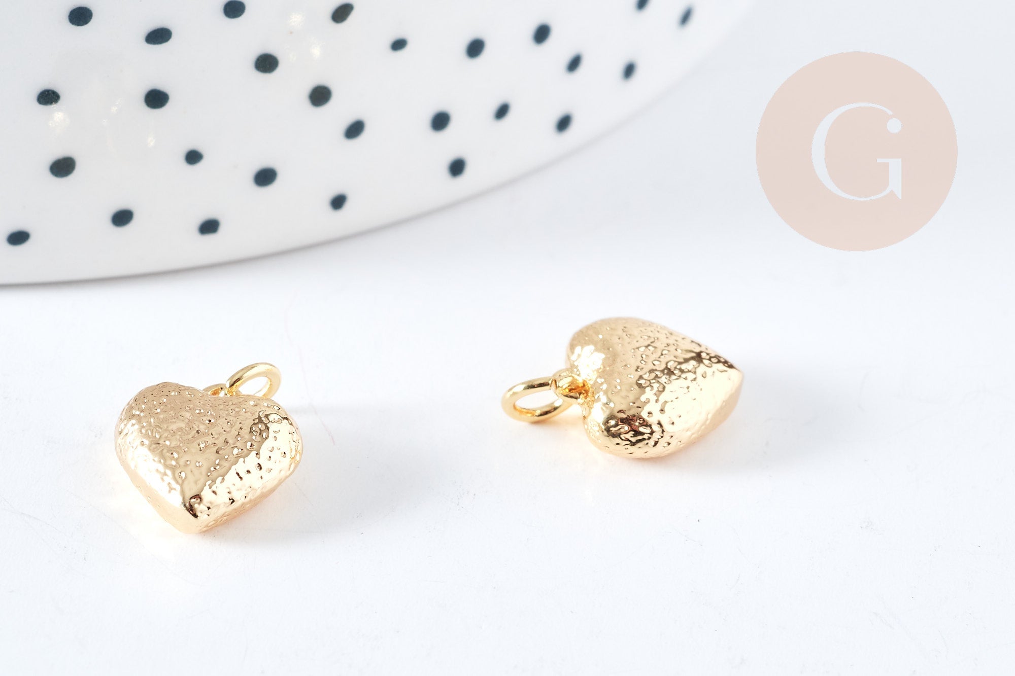 With its 18k gold-plated finish, this textured heart pendant will add a touch of luxury and sophistication to all your jewelry creations.