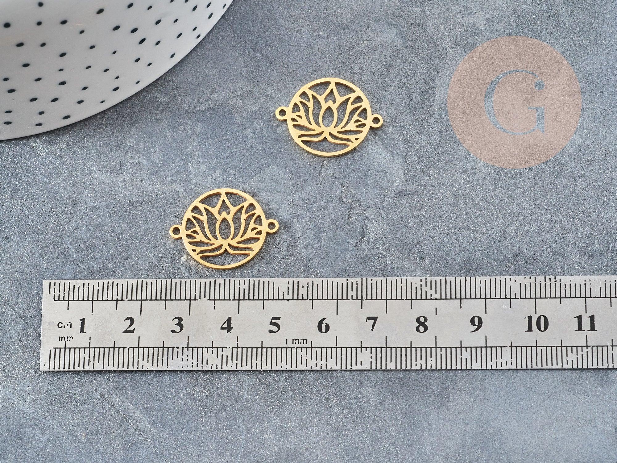 Here is a lotus flower connector pendant in gold-plated stainless steel, which you can embellish with a stone or pearls.