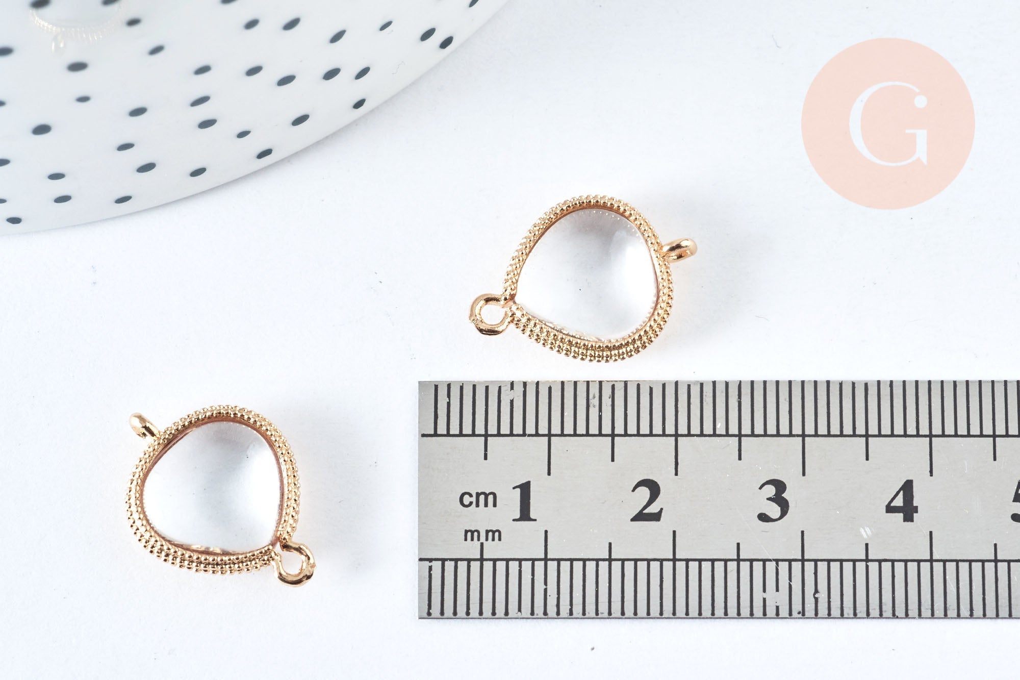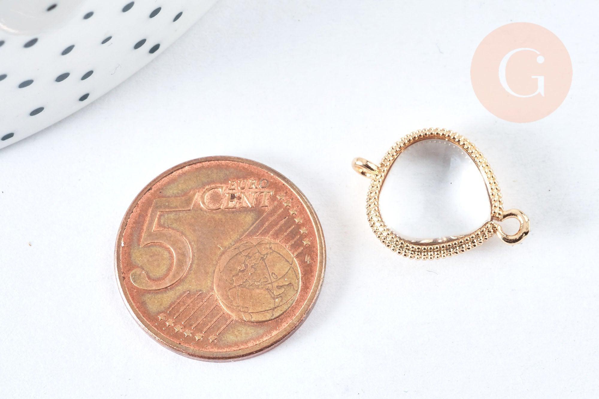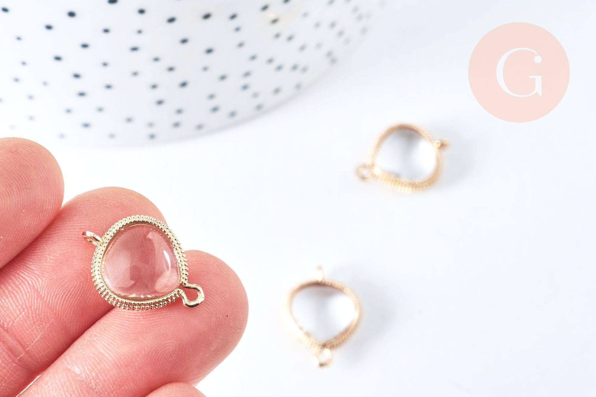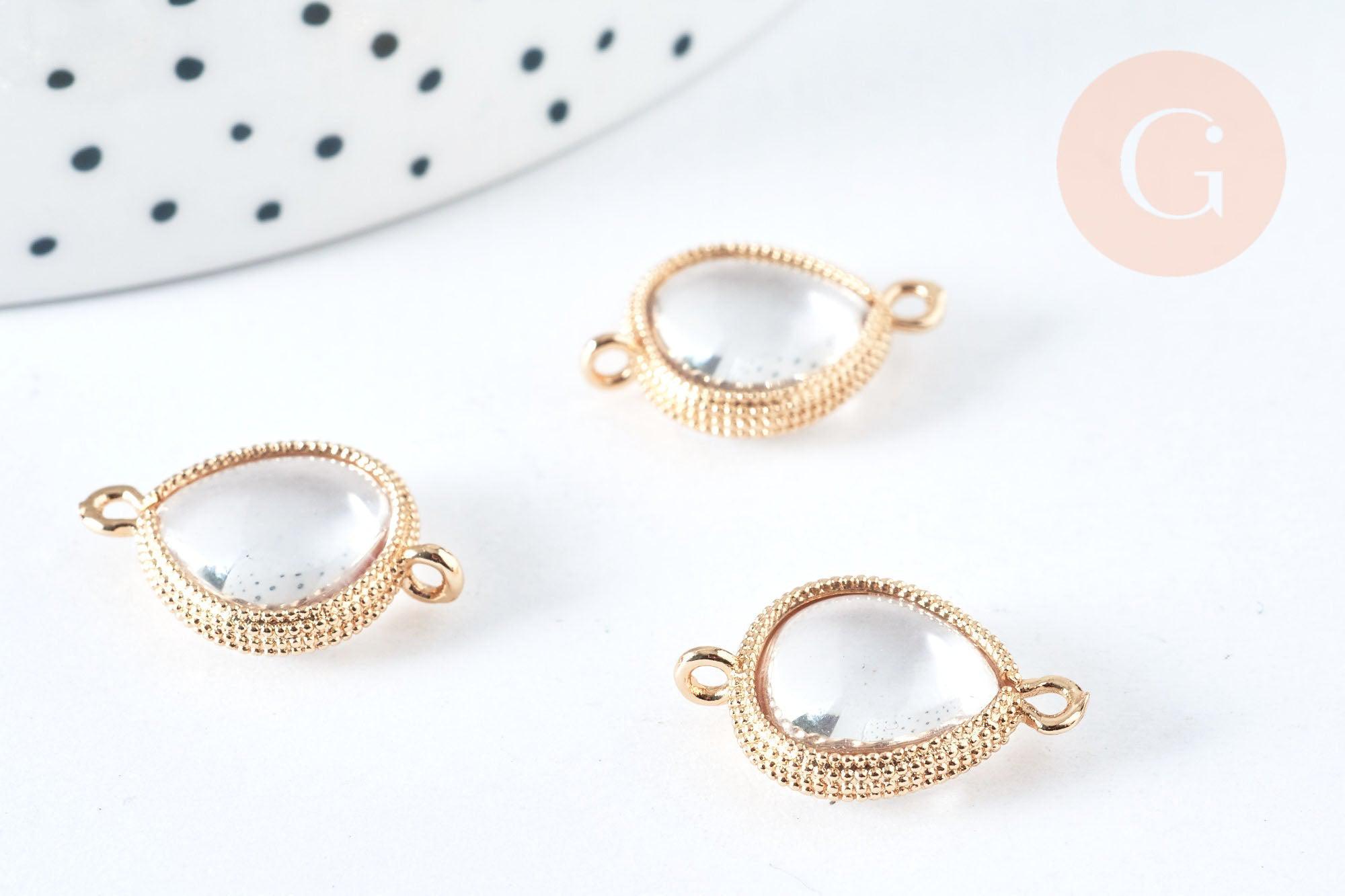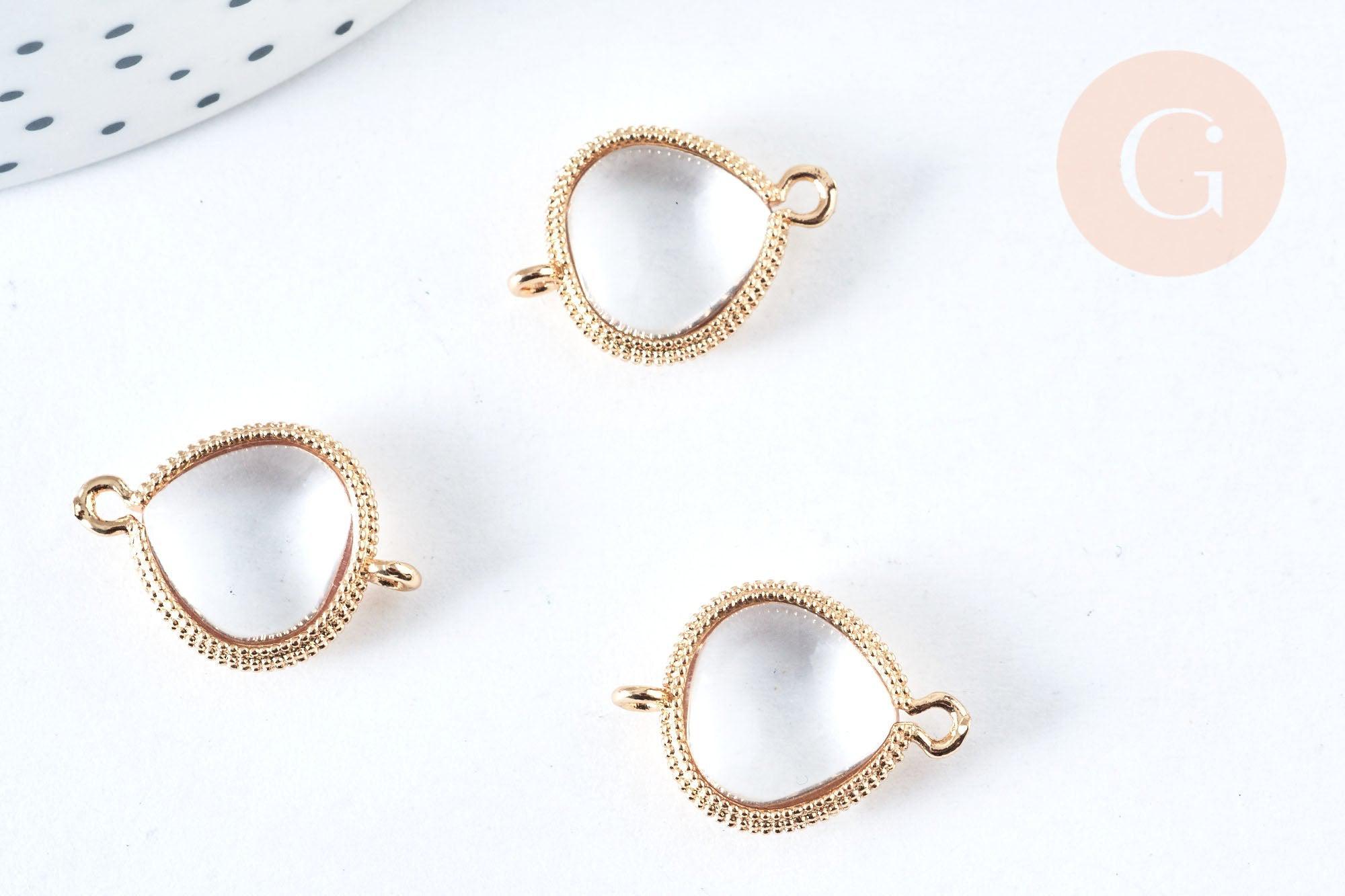 This drop-shaped link connector will allow you to create DIY costume jewelry . It has a gold brass finish and the crystal is transparent
