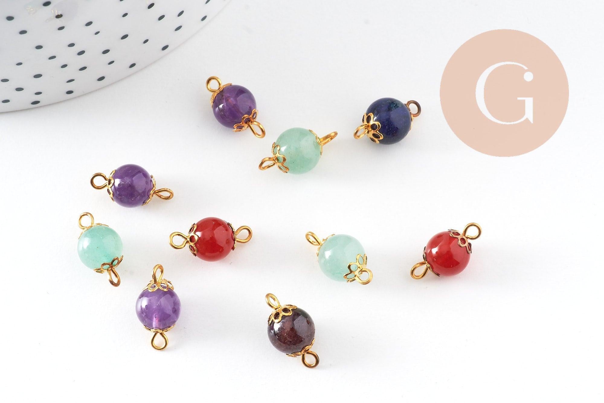 Round connector pendant aventurine amethyst carnelian lapis obsidian, natural stone jewelry creation pendant, 16mm, set of 10