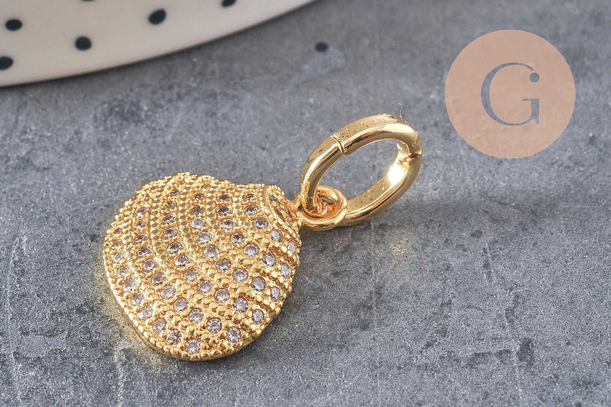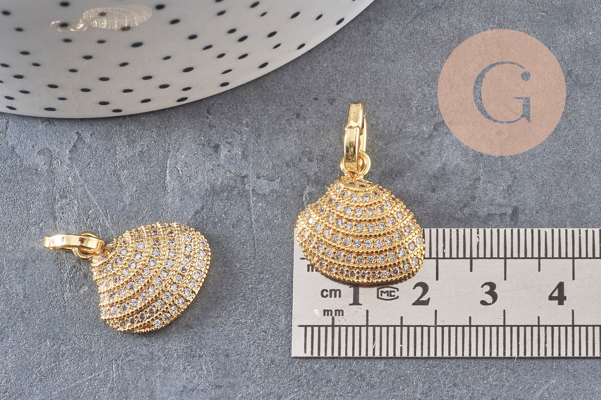 2 shell pendants in 14K gold-plated metal. The ring is located at the top of the shell.
