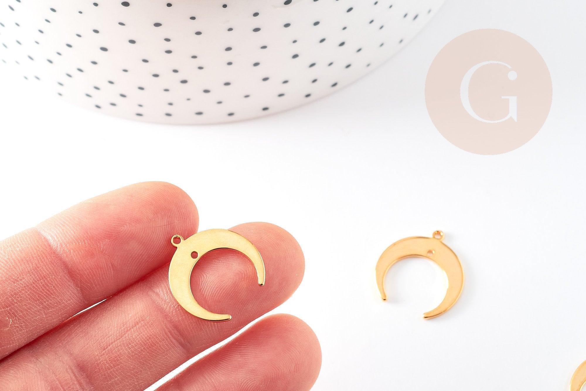 To adopt the celestial trend, immediately adopt this small golden pendant in the shape of a crescent moon in 18k gold-plated brass.