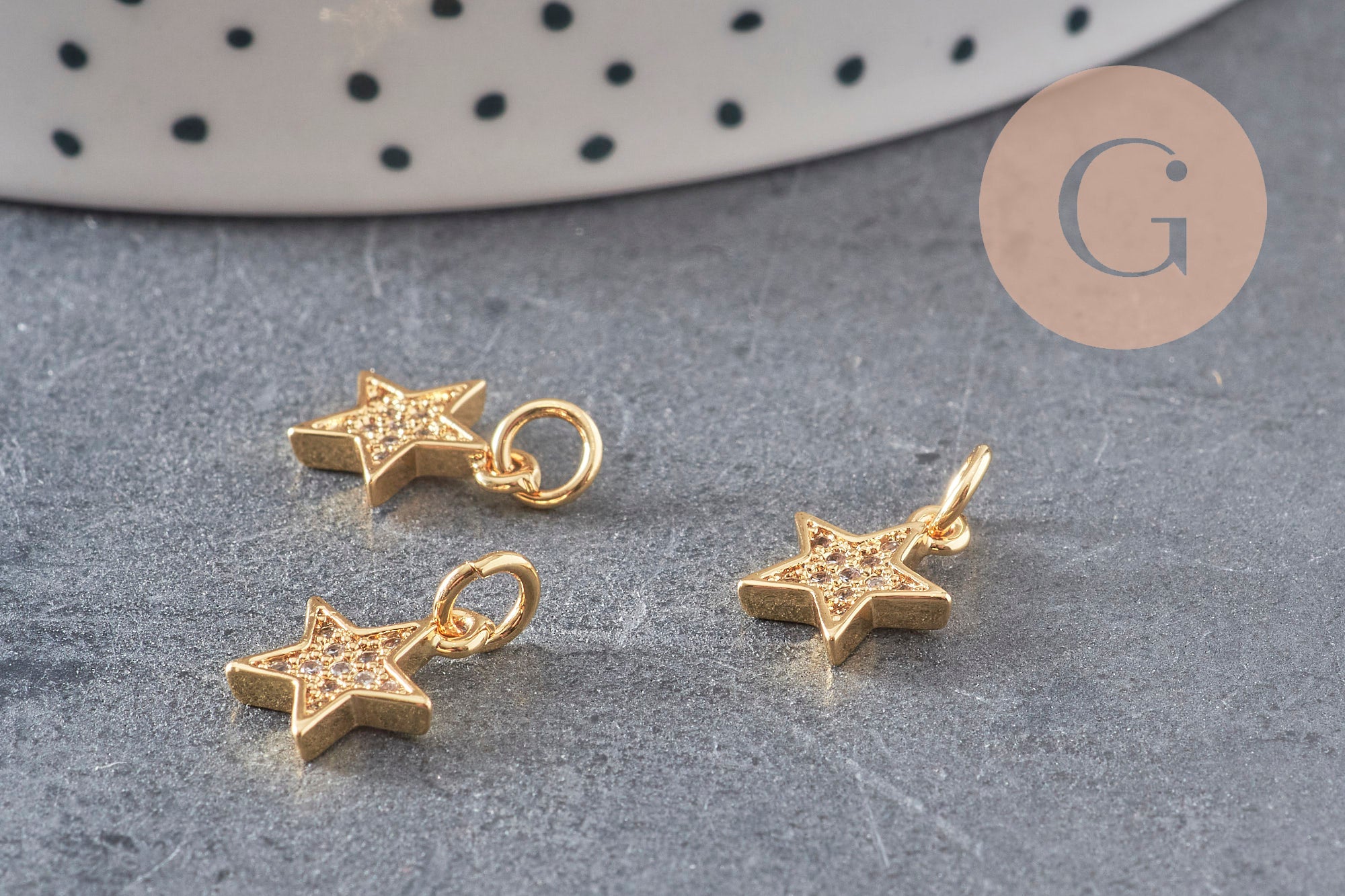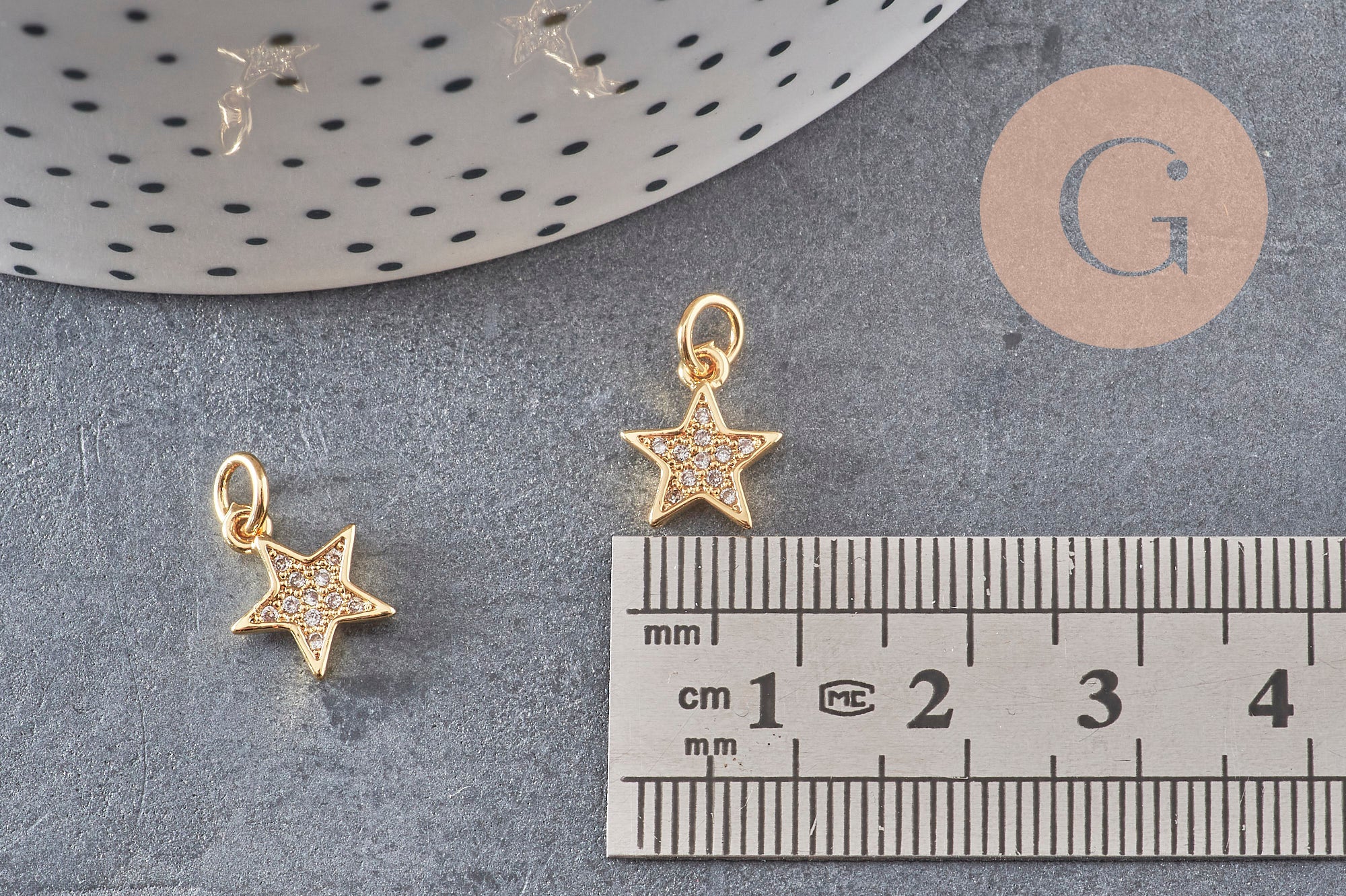 Golden star pendant with zircon crystal, golden pendant, lucky charm, golden brass, constellation jewelry, jewelry creation, 11.5mm, unit