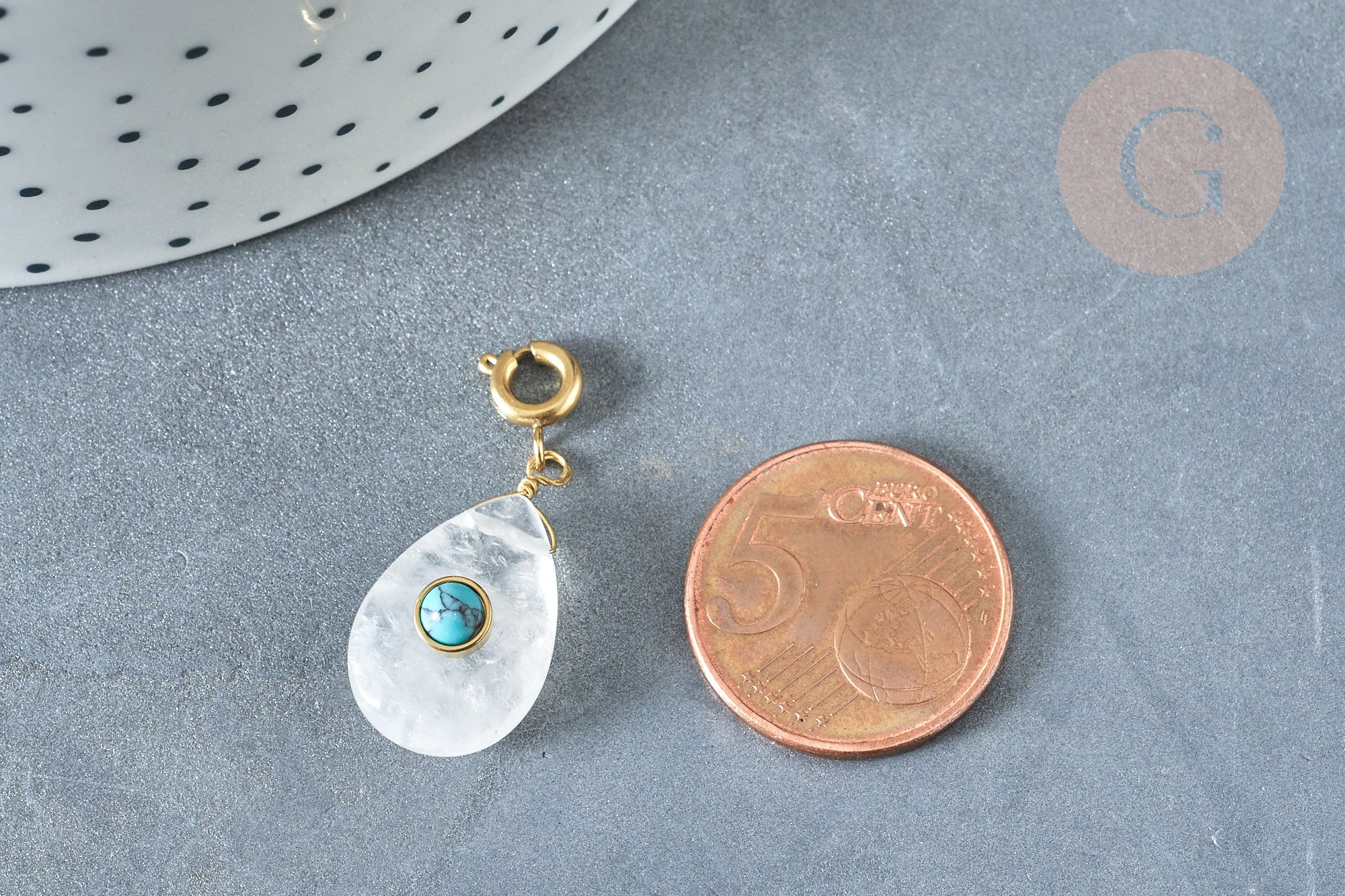 EP-Natural rock crystal amulet drop pendant gold-plated stainless steel 30mm, x1 (G7631)